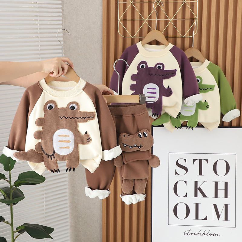 SSX220824-133 طقم شتوي تقيل مبطن فرو بالكامل قطعتين ( بلوزة + بنطلون)