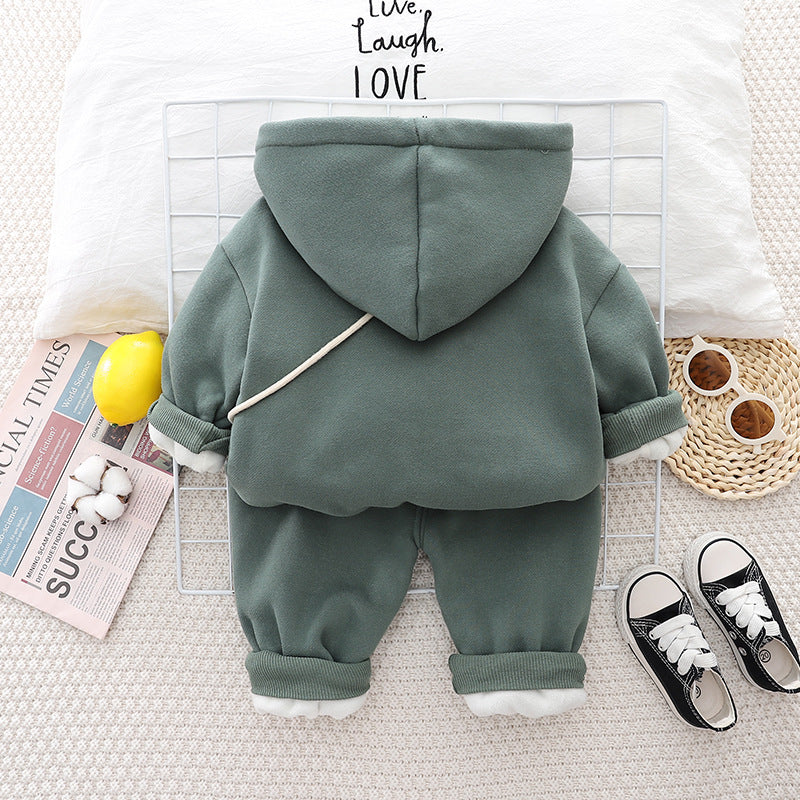 SSX220824-43 طقم ولادي شتوي تقيل مبطن فرو بالكامل قطعتين ( جكيت + بنطلون)