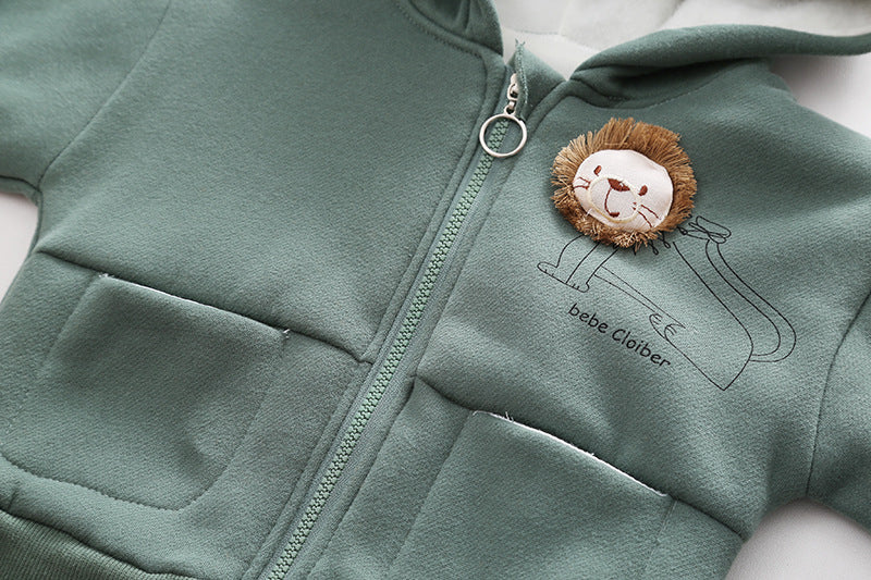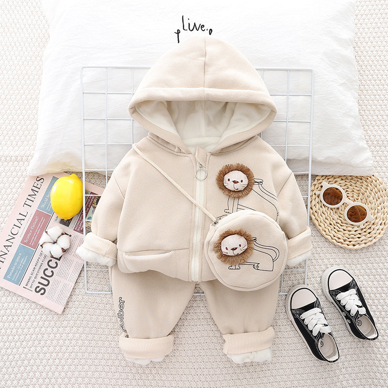 طقم ولادي شتوي تقيل مبطن فرو بالكامل قطعتين ( جكيت + بنطلون)