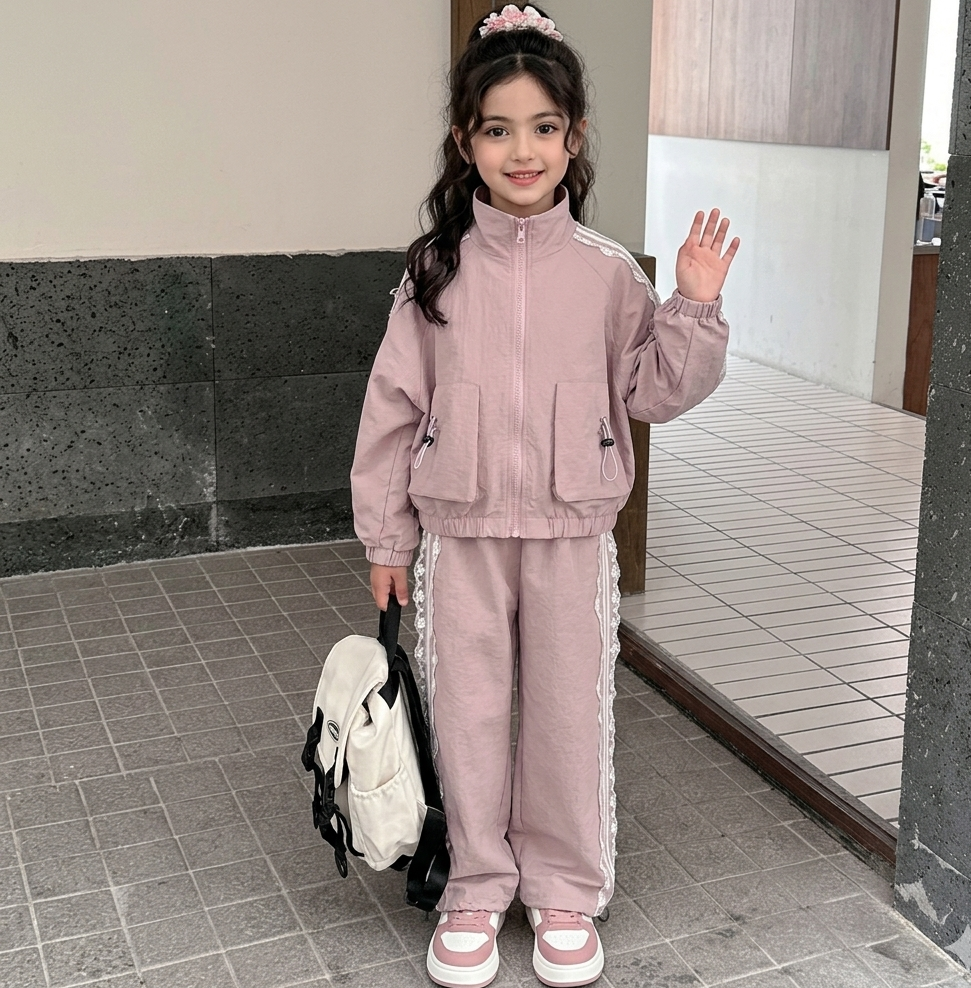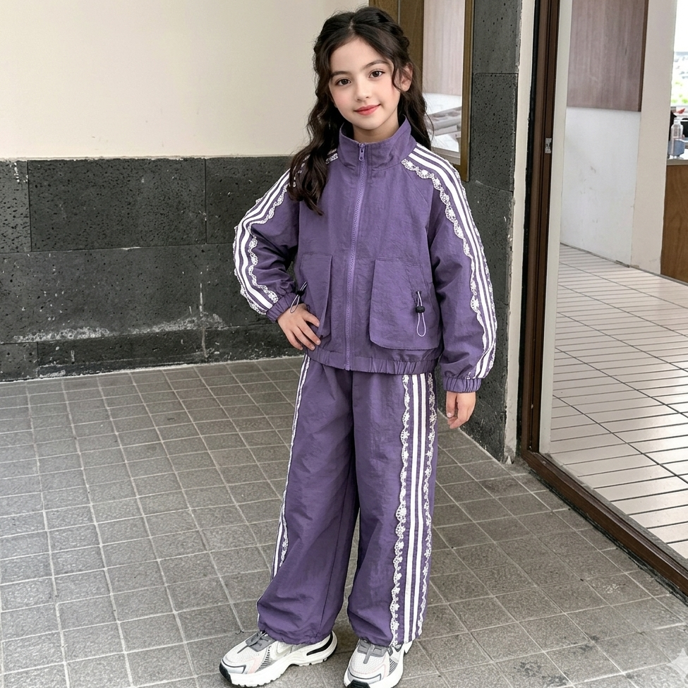 سبورت ستان قطعتين ( جكيت + بنطلون) مزينة بالدانتيل