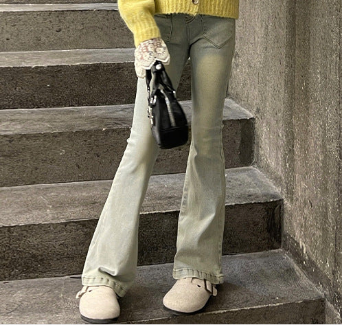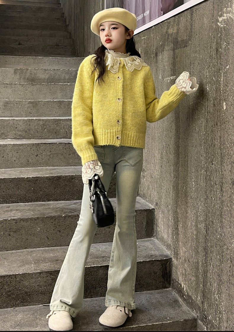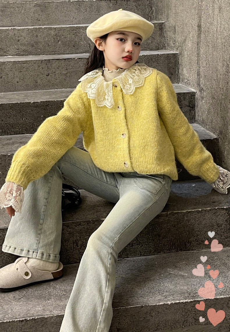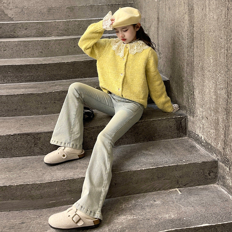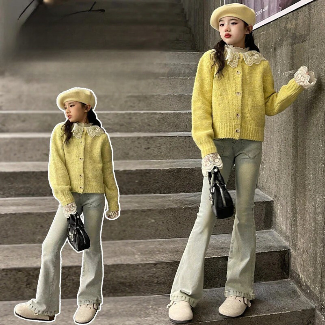طقم قطعتين ( جكيت صوف بالدانتيل + بنطلون جينز )