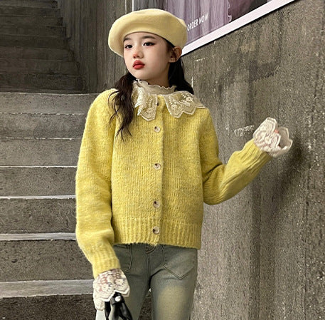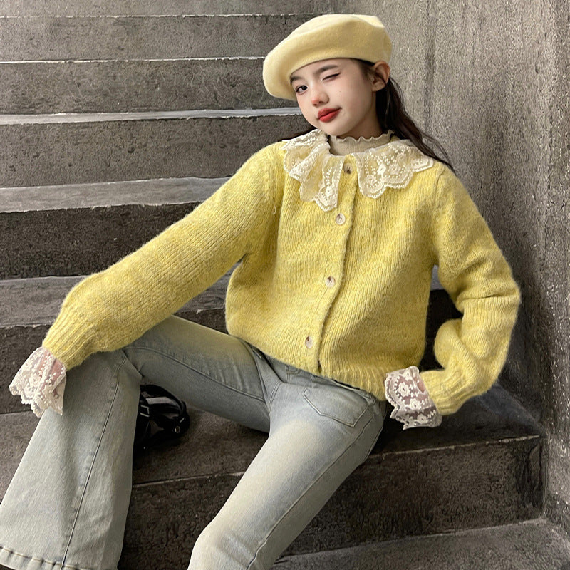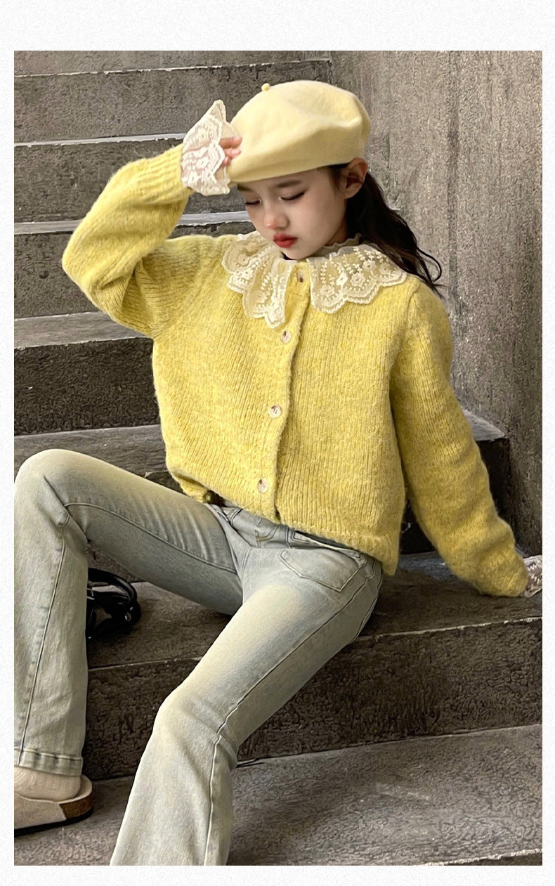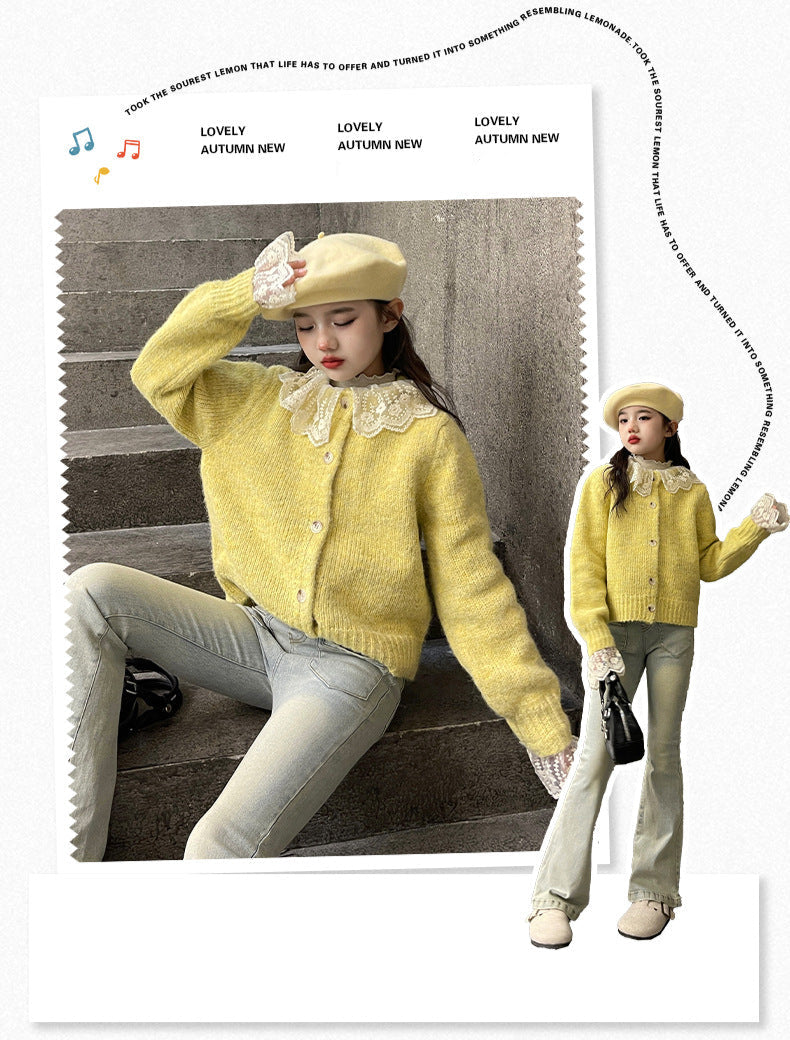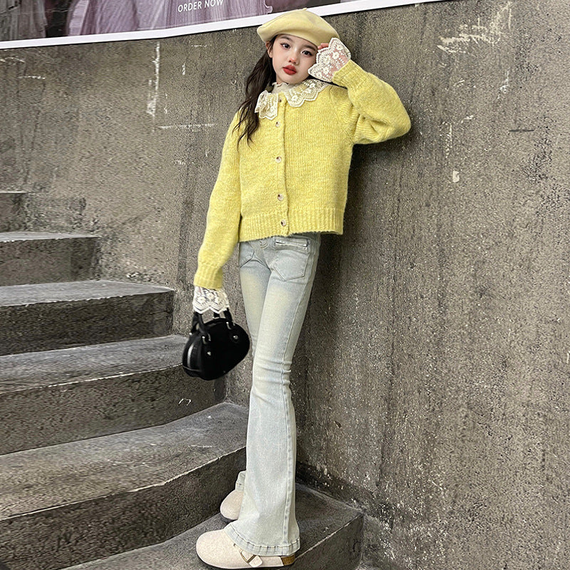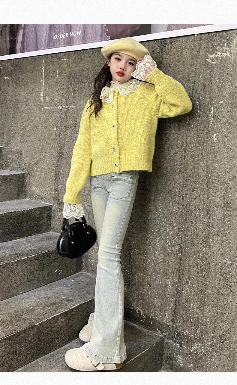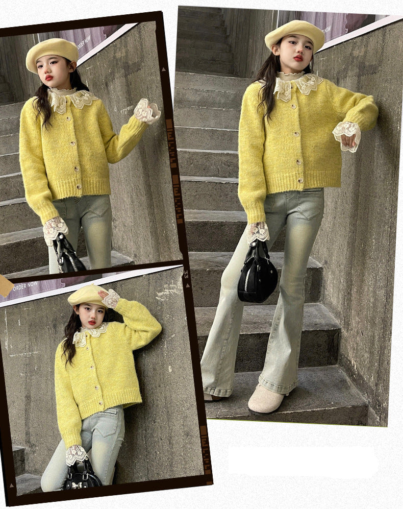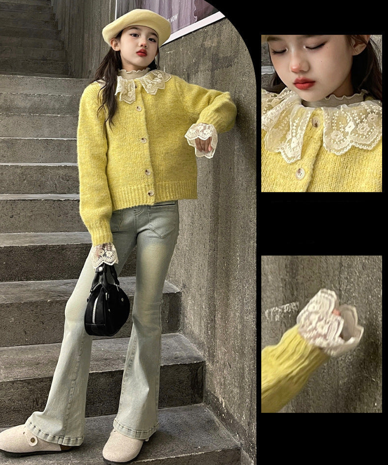 WZH191124-26 طقم قطعتين ( جكيت صوف بالدانتيل + بنطلون جينز )