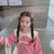 RM231223-22 طقم بناتي قطعتين ( بلوزة قطنية + بنطلون كتان ناعم) Pink