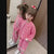 SSN040924-21 طقم بناتي قطن تقيل خريفي ربيعي قطعتين ( بلوزة + بنطلون) Pink