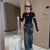 RM171223-41 طقم بناتي قطعتين ( بلوزة قطنية + بنطلون جينز) Black