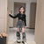 RM171223-37 طقم بناتي ( أفرهول + بلوز قطنية) Black