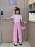 RM090424-26 نريننج صيفي بناتي ( بلوزة قطنية + بنطلون ستان ) Pink