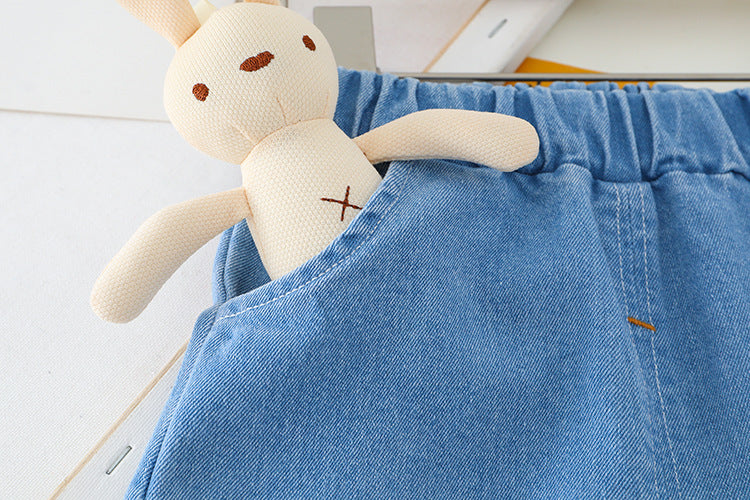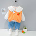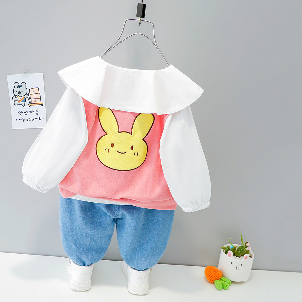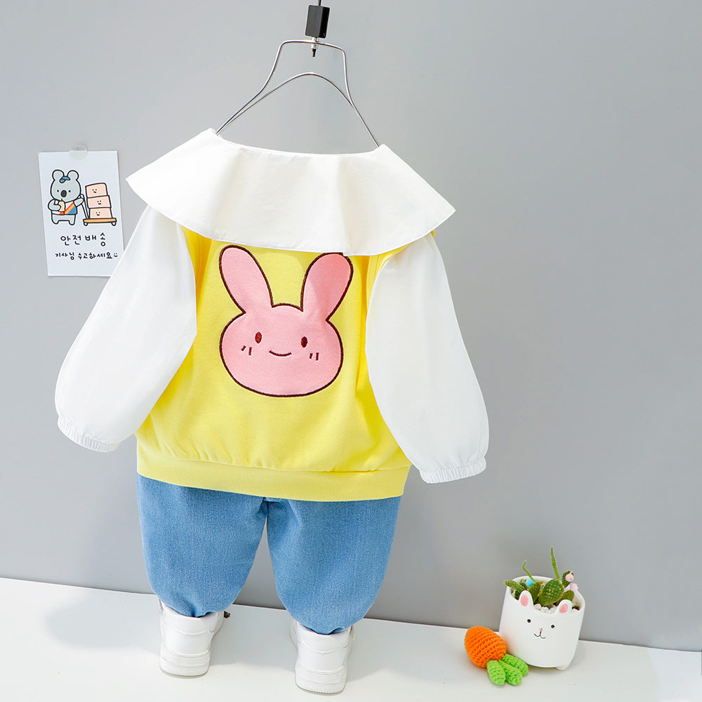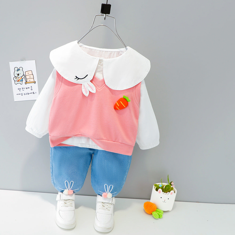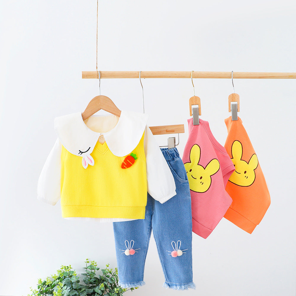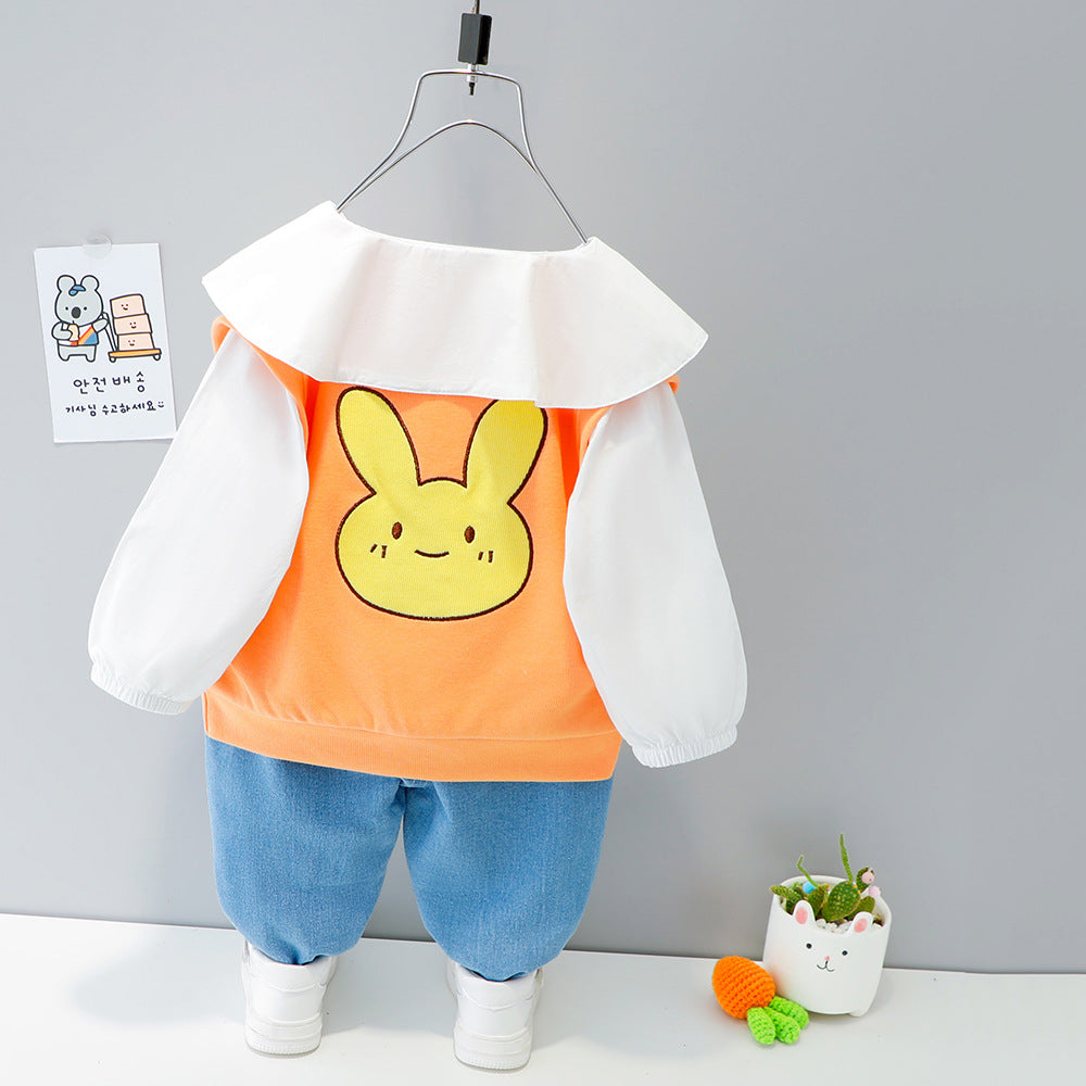 AO0111-22 طقم 3 قطع ( بلوزة مع قبة + فست + بنطلون جينز ناعم )