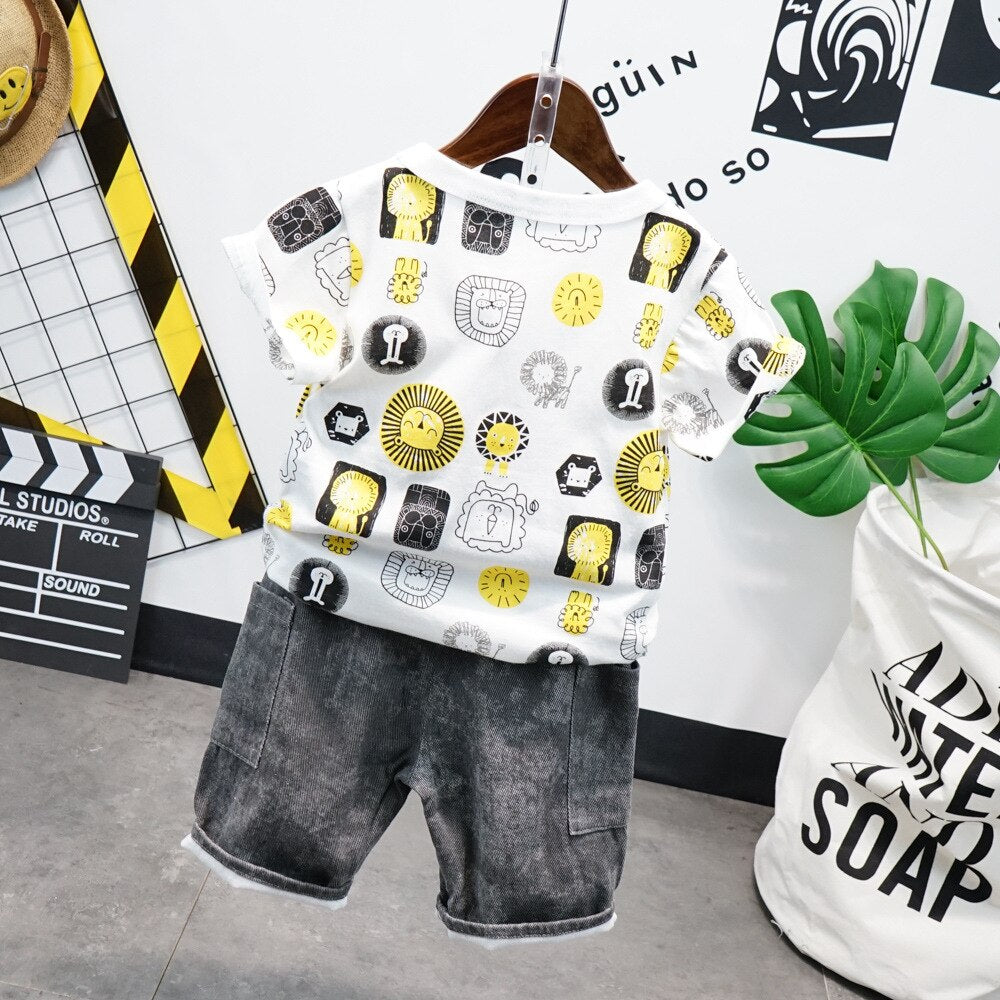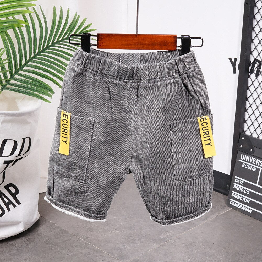 طقم جينز مميز قطعتين ( بلوزة قطنية + شورت جينز ناعم )