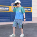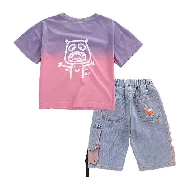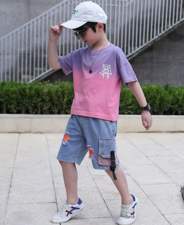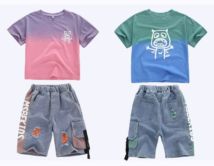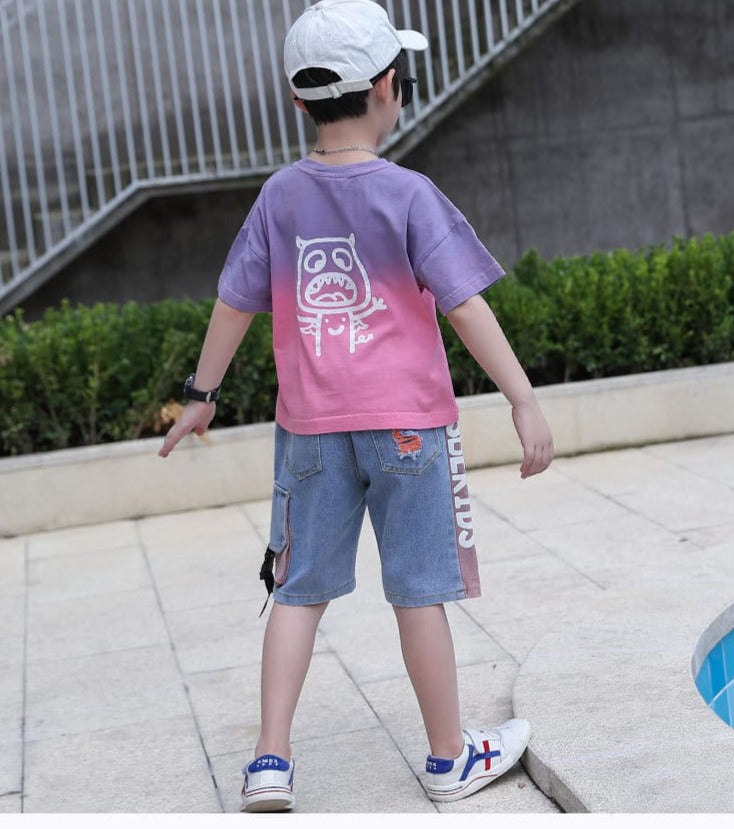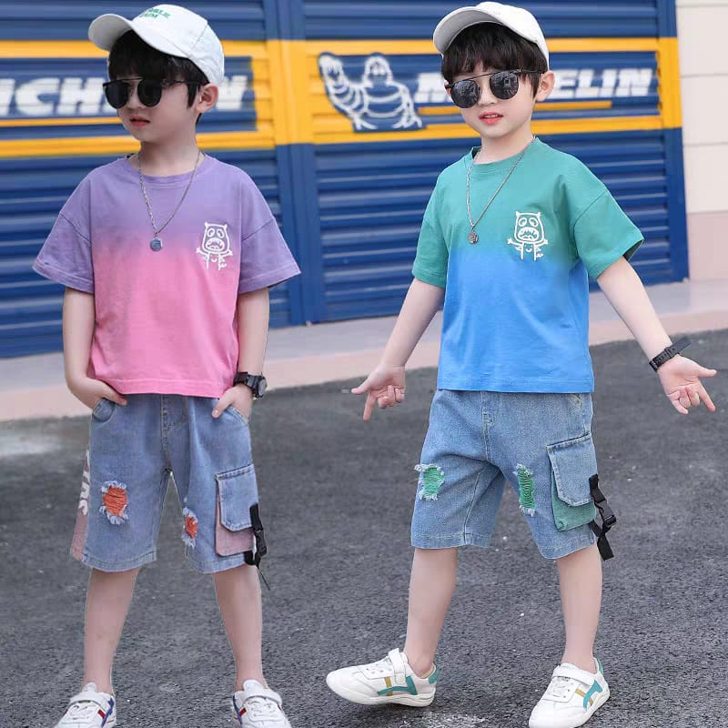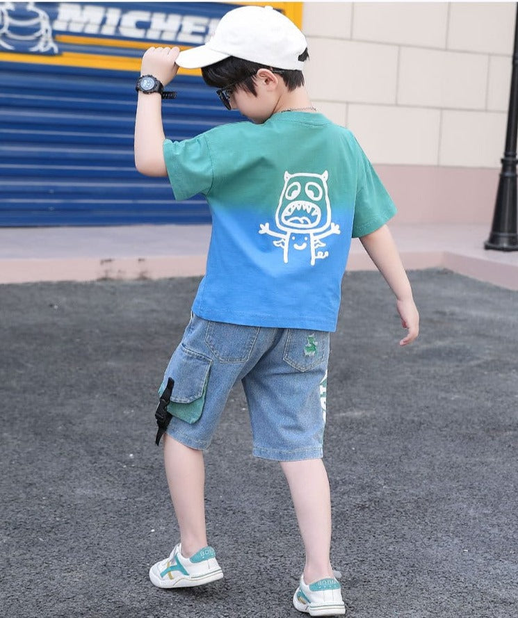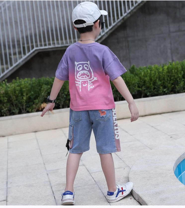 طقم ولادي جينز ( بلوزة قطنية + شورت جينز ناعم )