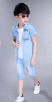 AO0402-19 طقم ولادي جينز قطعتين (جكيت + بنطلون شورت طويل)