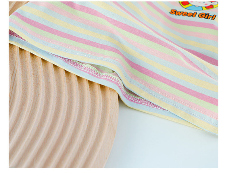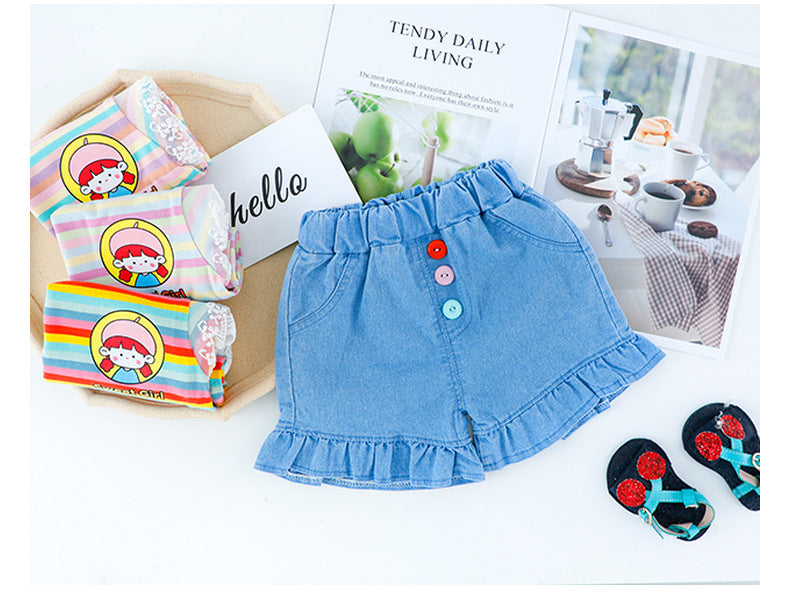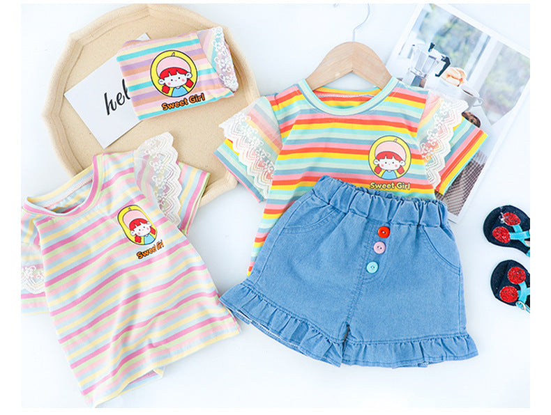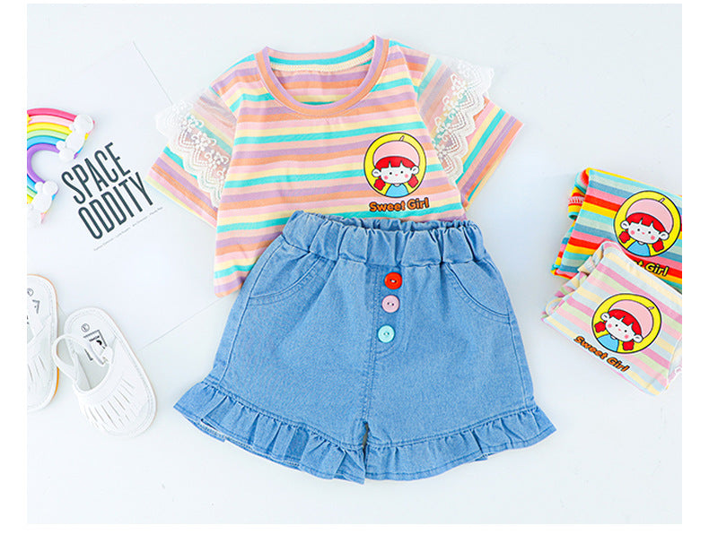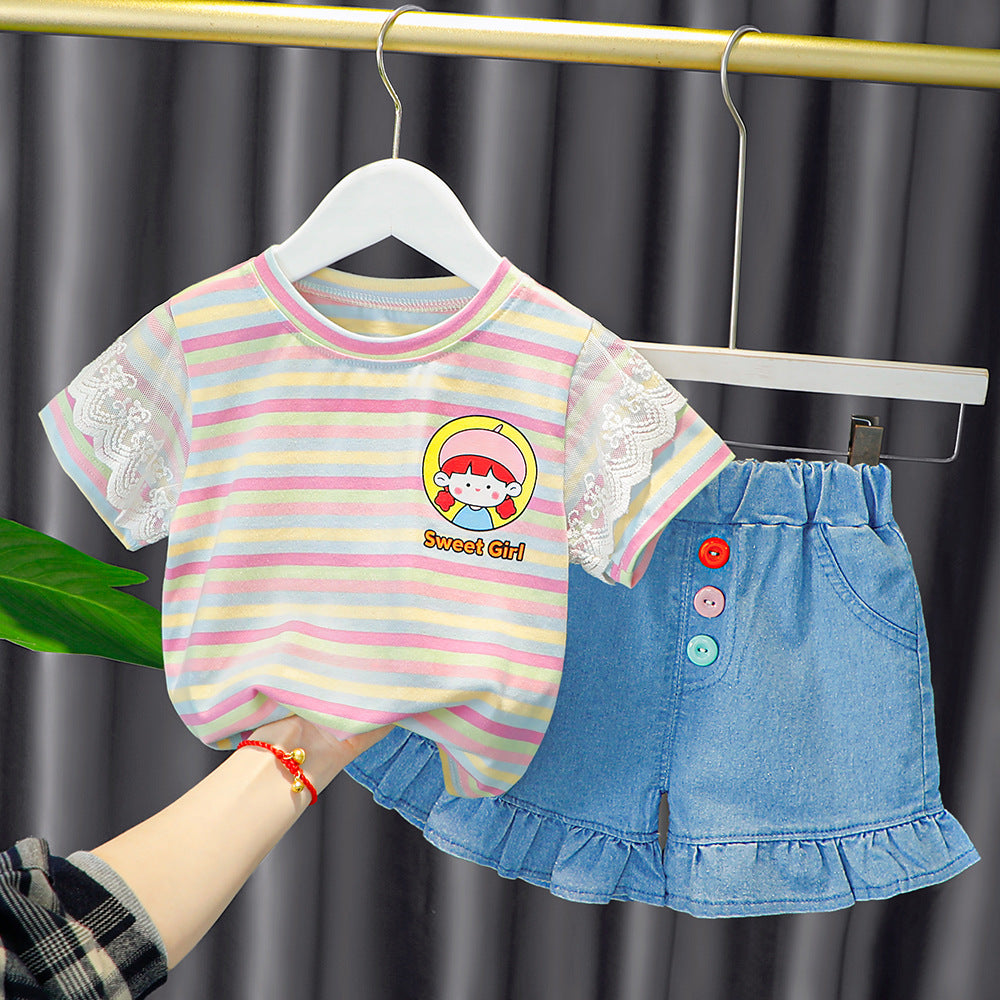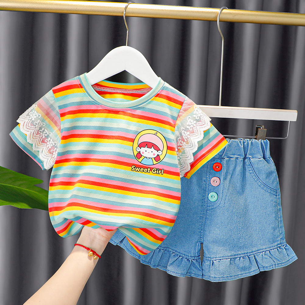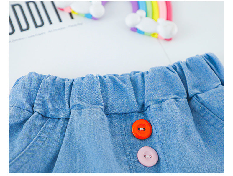 طقم بناتي قطعتين( بلوزة قطنية وشورت جينز ناعم )