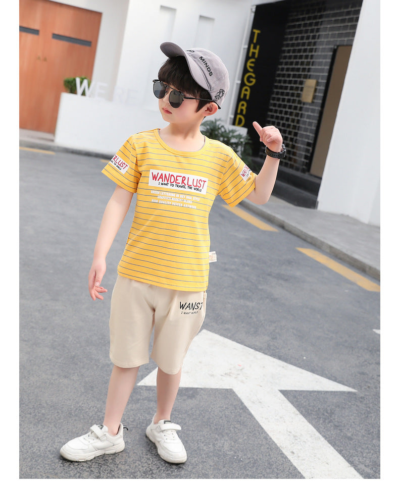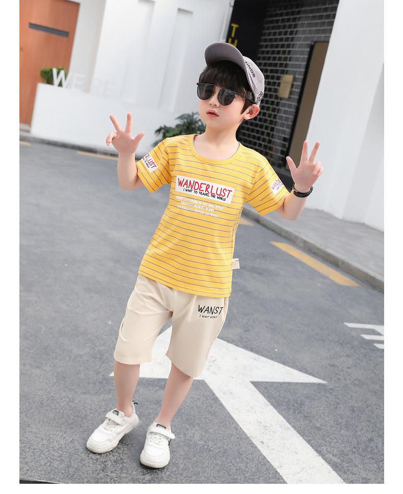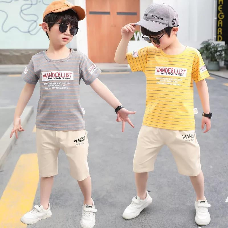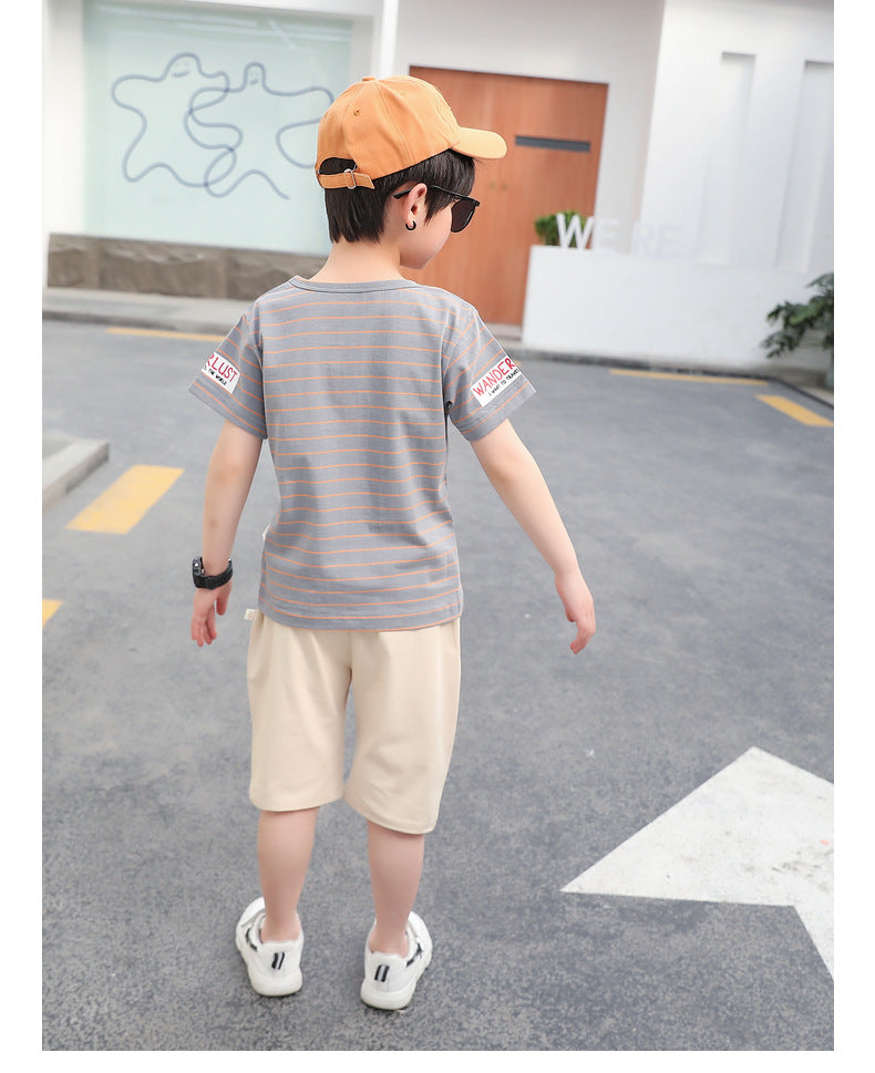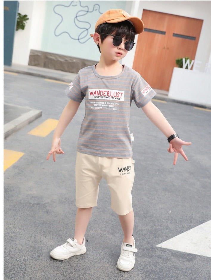 طقم ولادي قطعتين ( بلوزة قطنية + شورت كتان )