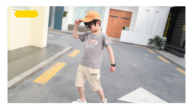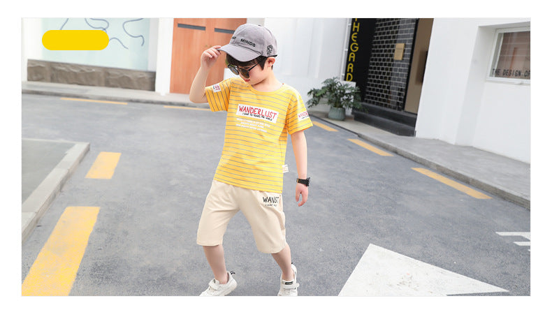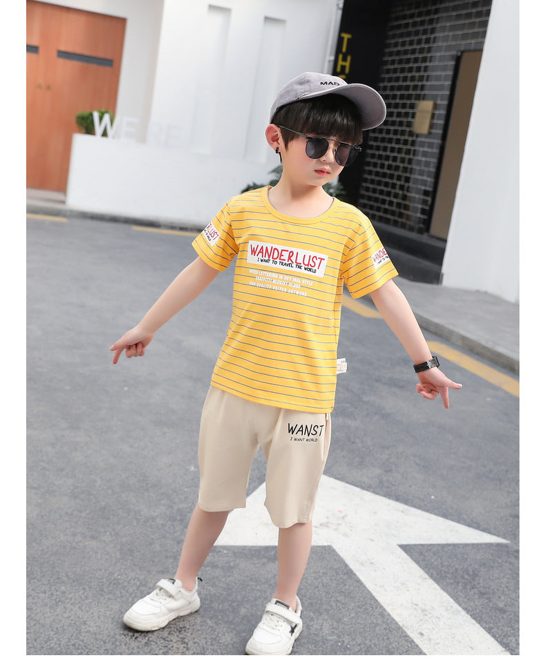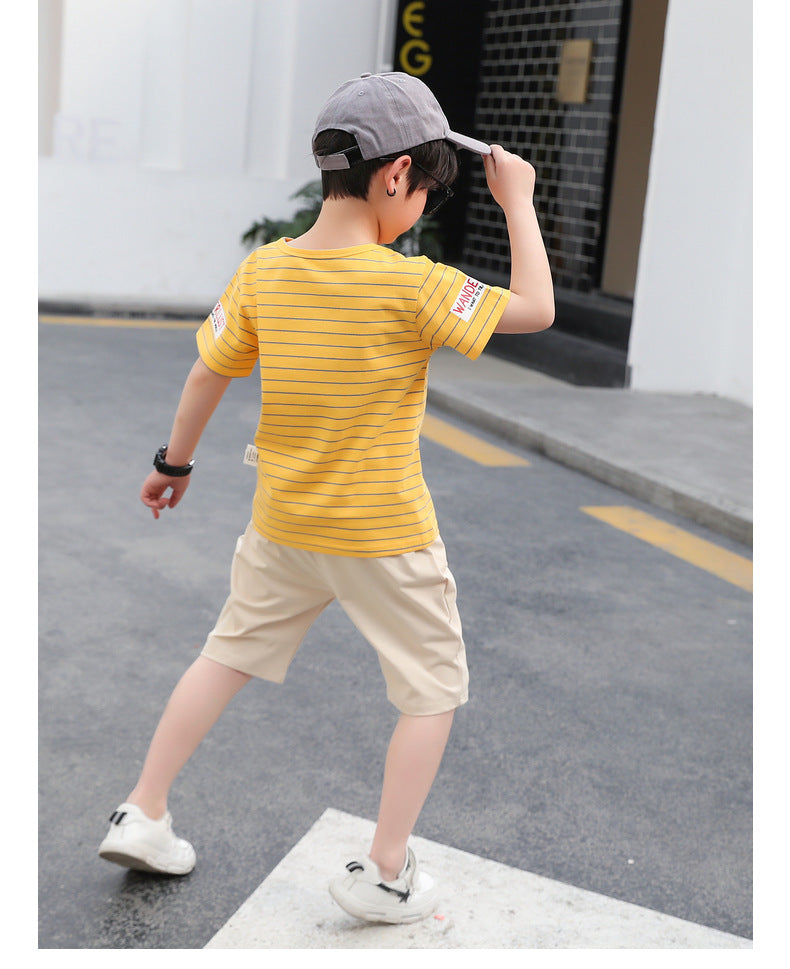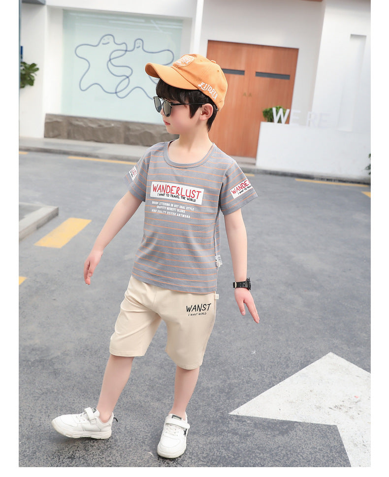 طقم ولادي قطعتين ( بلوزة قطنية + شورت كتان )