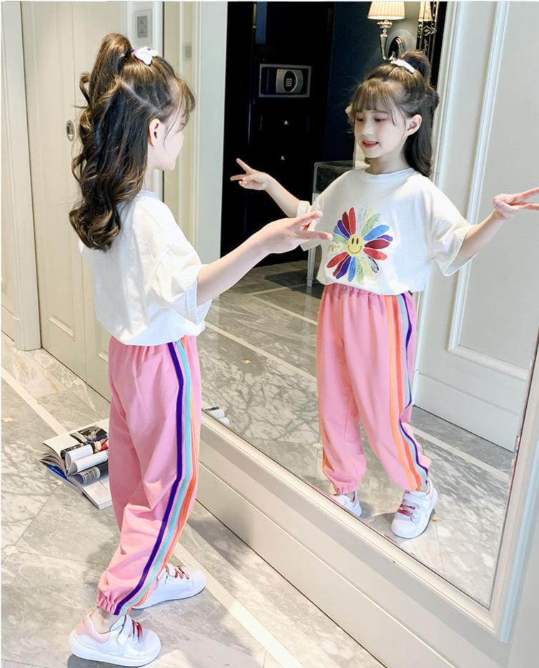 AO0402-45 طقم سبورت بناتي قطني ( بلوزة قطنية+ بنطلون قطني)