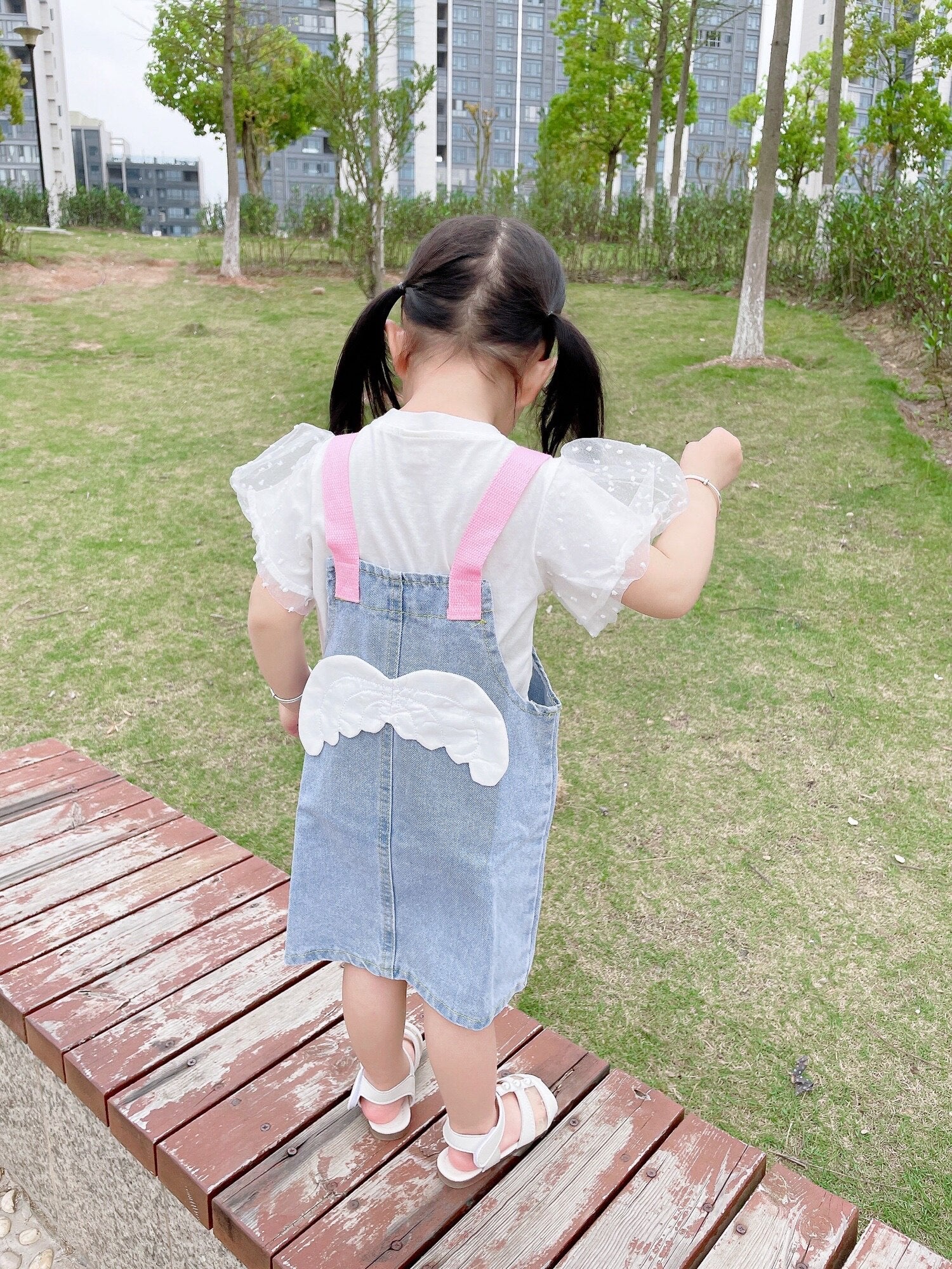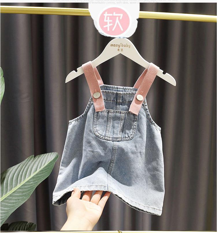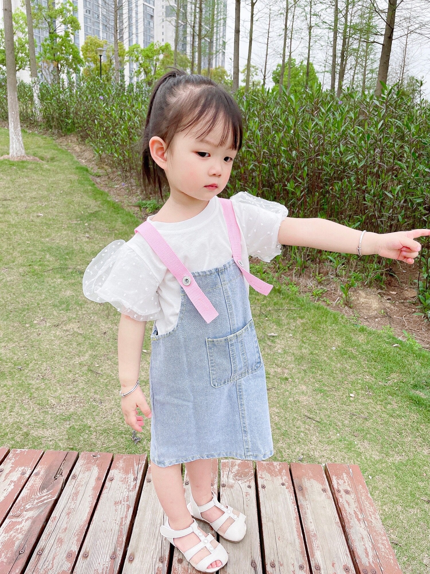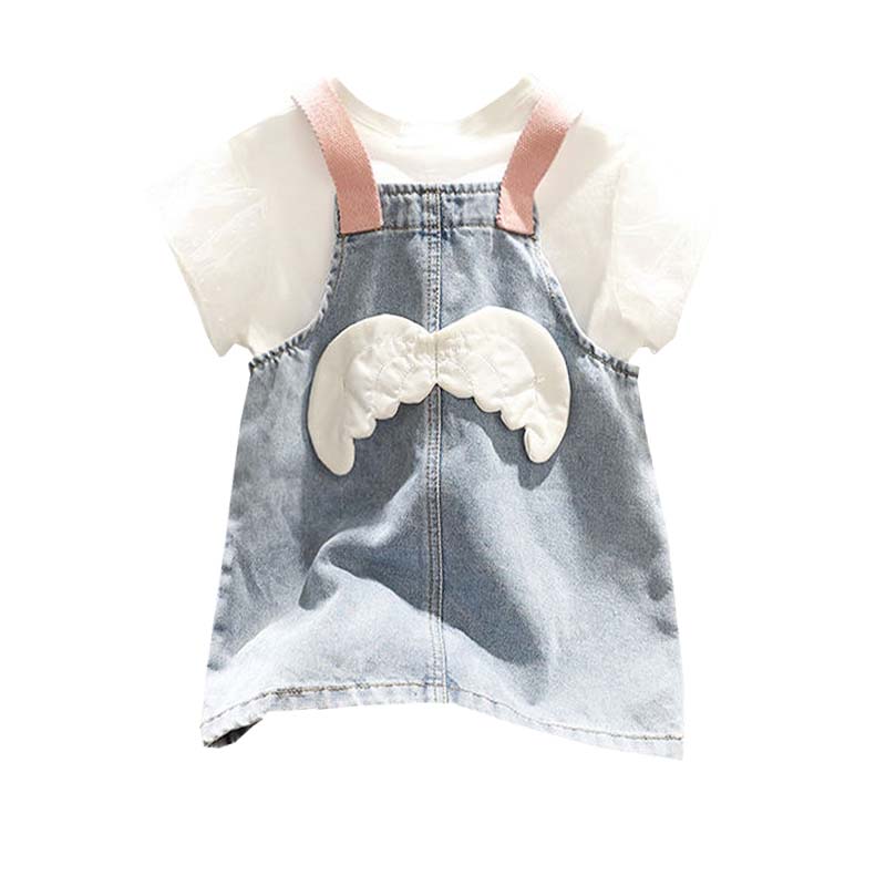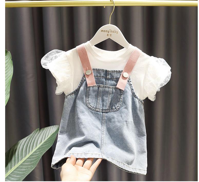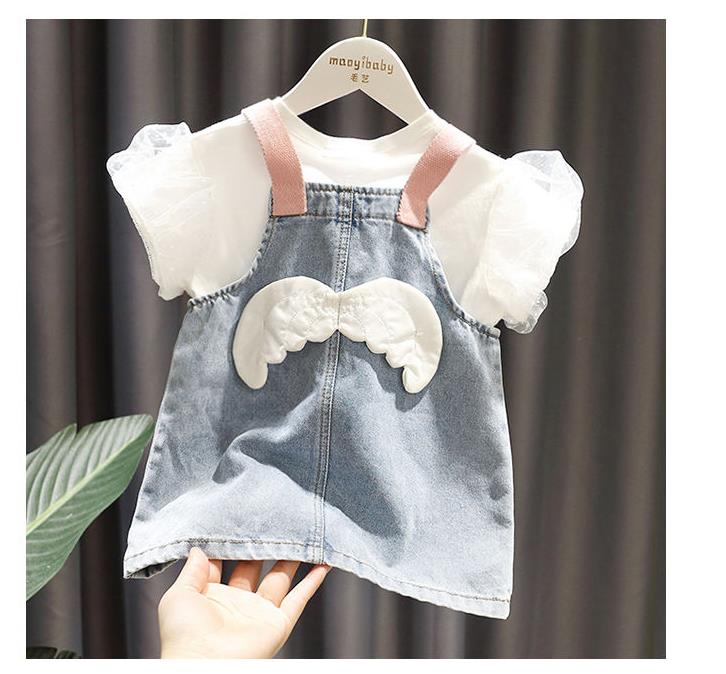 AO0402-75 فستان جينز + بلوزة بيضا كمام نفخ