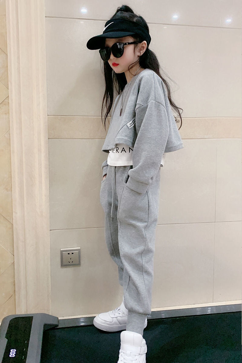 AO0505-37 طقم قطني بناتي ( بلوزة قطعتين + بنطلون )