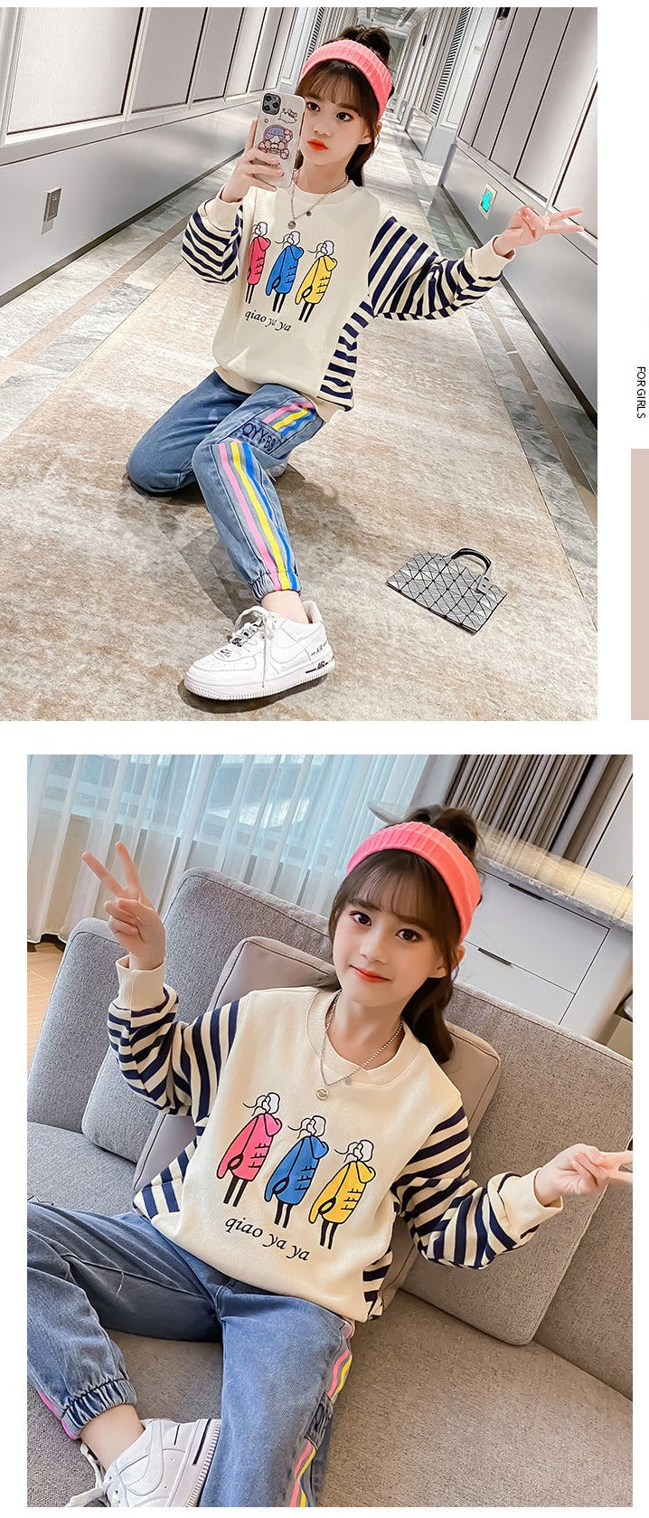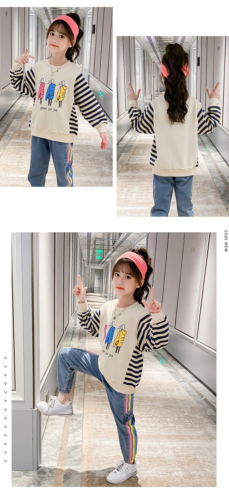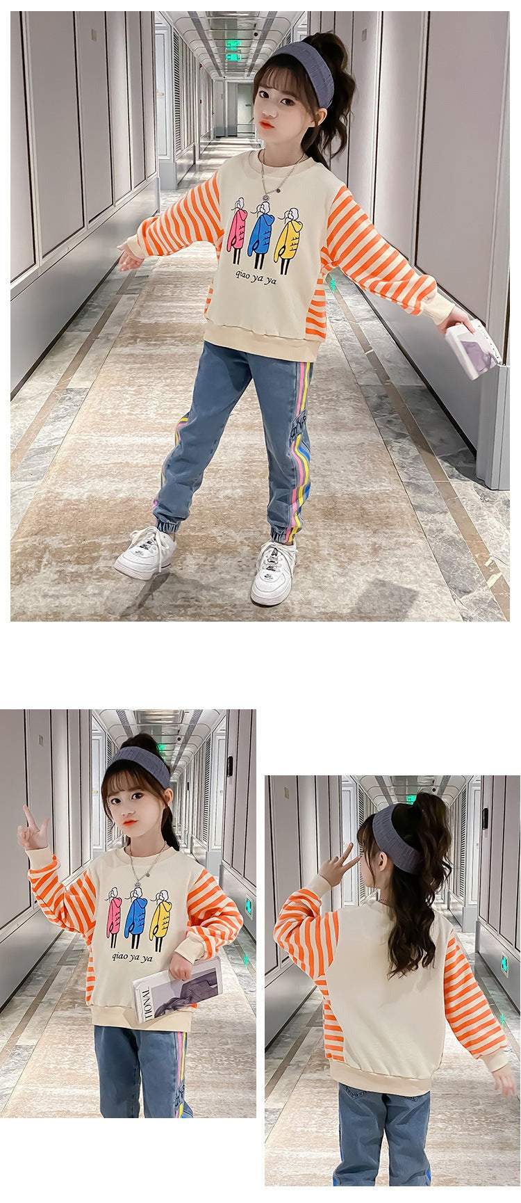AO0505-58 طقم جيز مميز خريفي دافي ( بلوزة قطنية ثقيلة + بنطلون جينز ناعم )