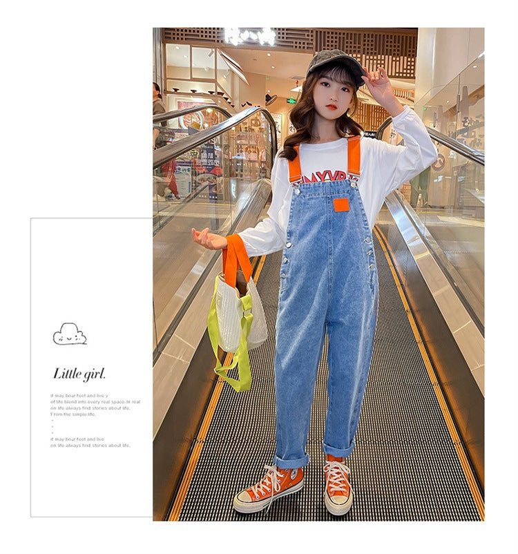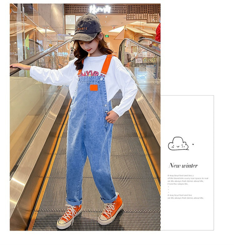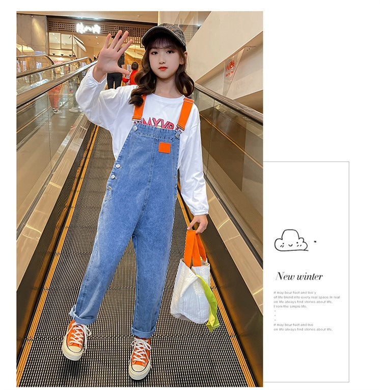 AO0507-98 طقم بناتي قطعتين ( افرهول جينز + بلوزة)