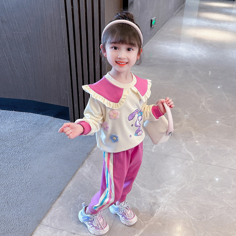 AO0508-251  طقم قطني خريفي دافي قطعتين ( بلوزة + بنطلون )