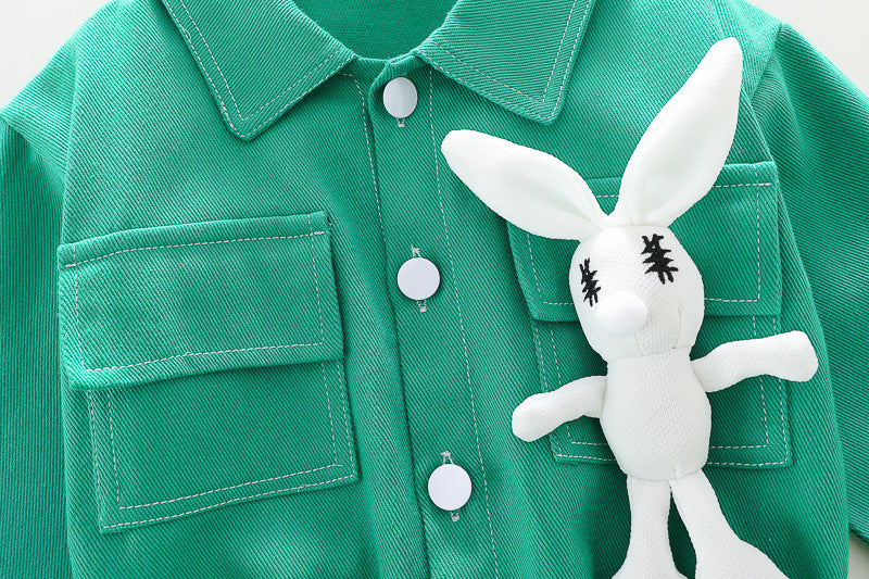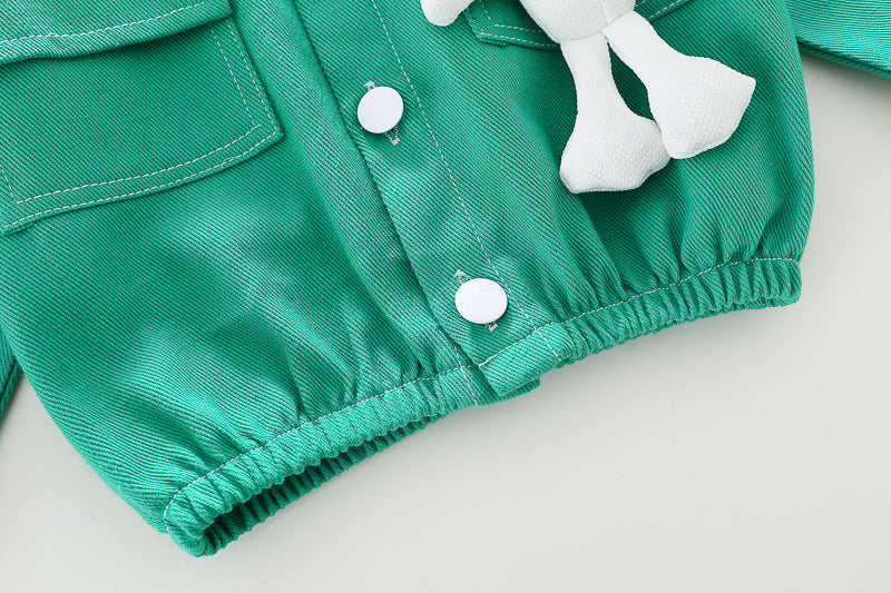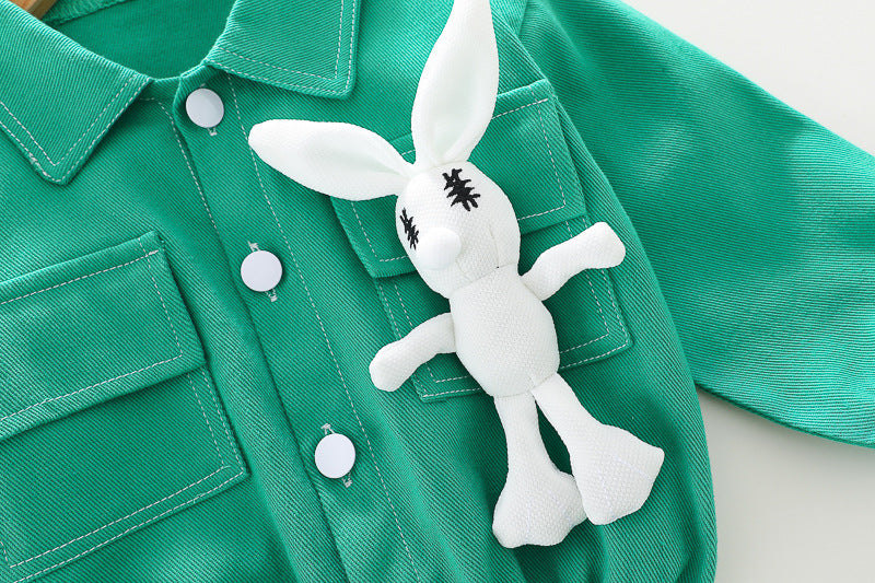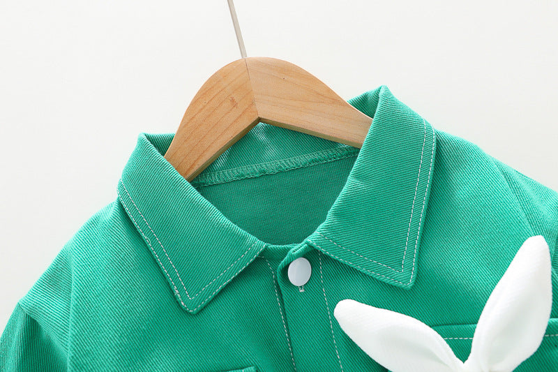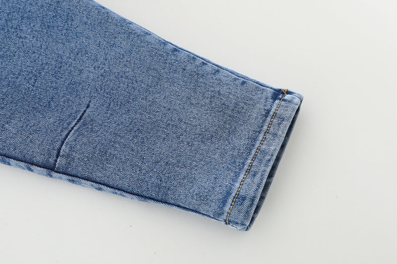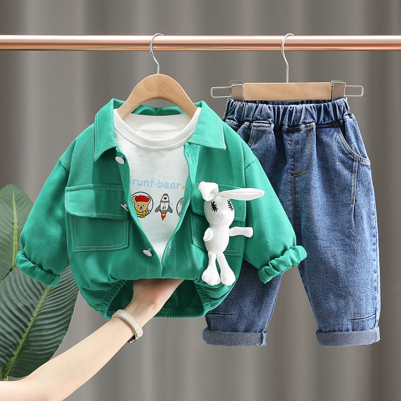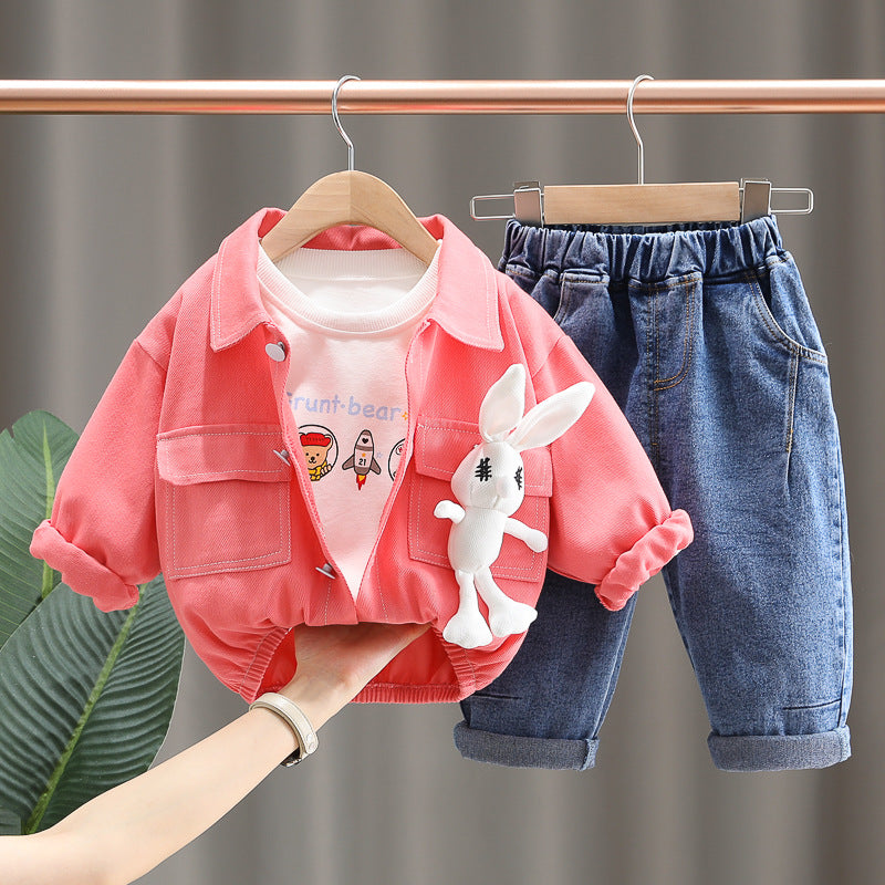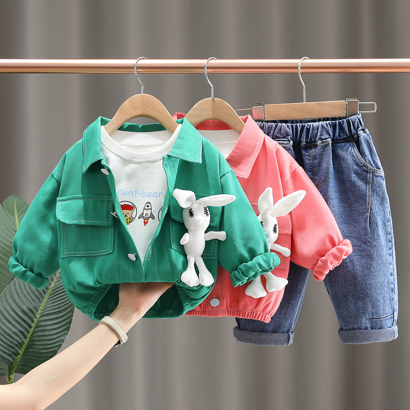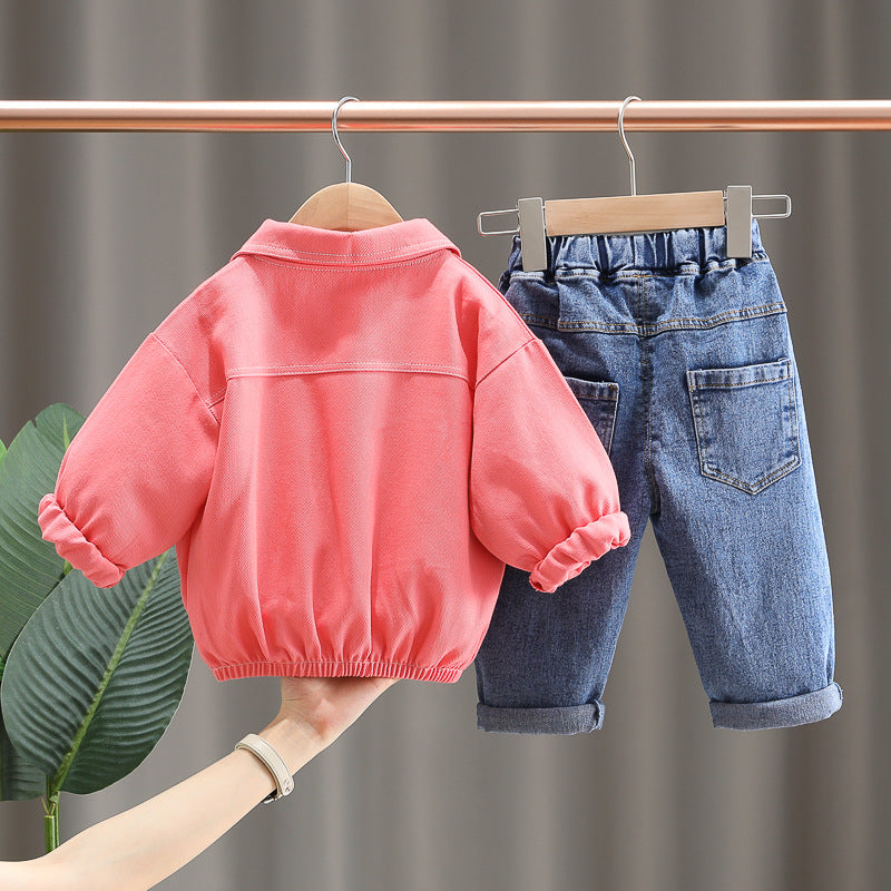 AO0508-42 طقم جينز 3 قطع ( بلوزة قطنية + جكيت كتان + بنطلون جينز)