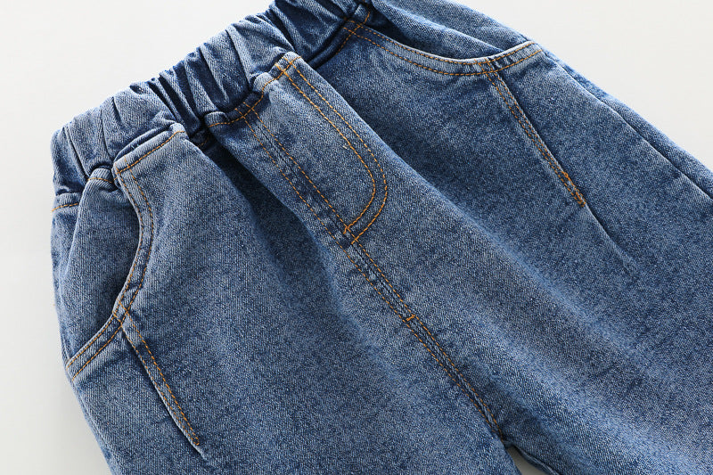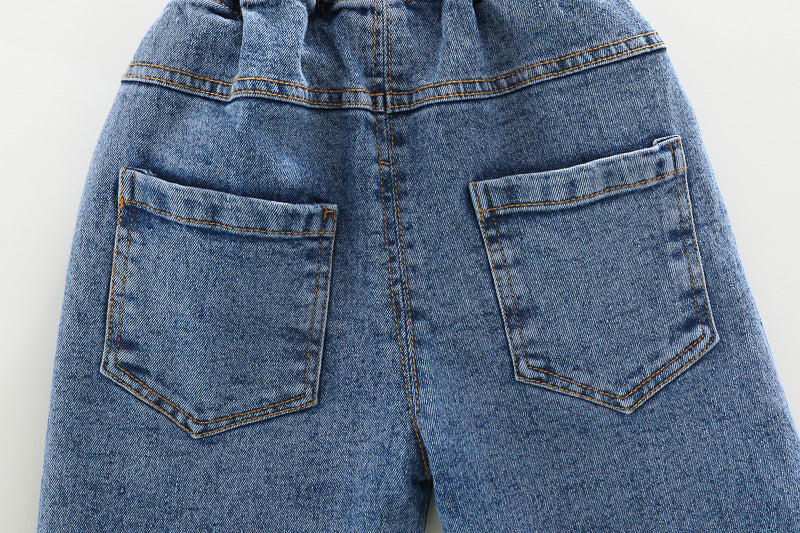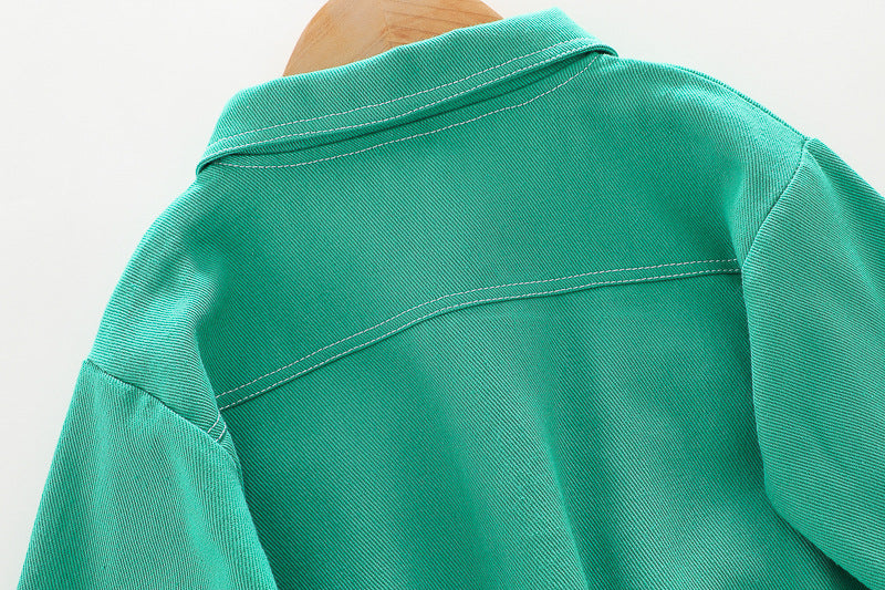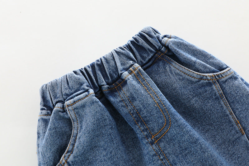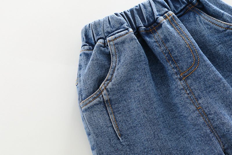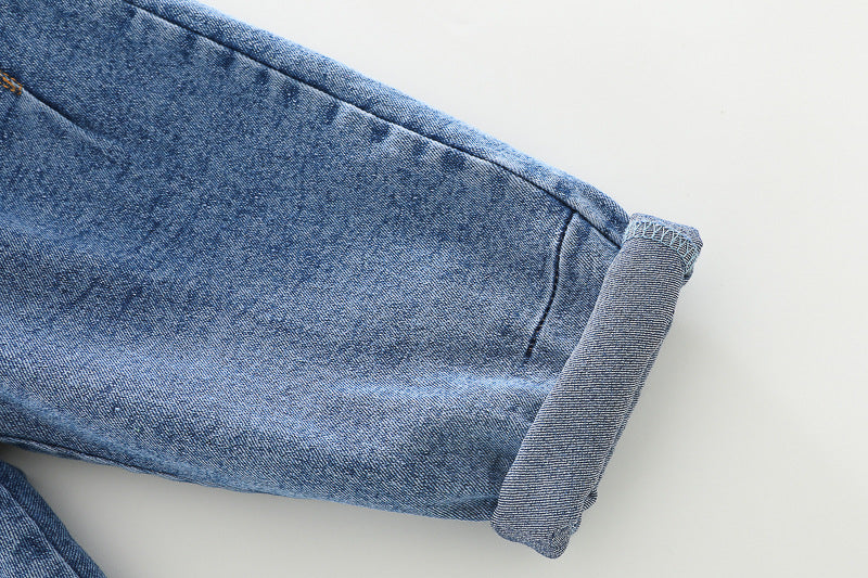 طقم جينز 3 قطع ( بلوزة قطنية + جكيت كتان + بنطلون جينز)
