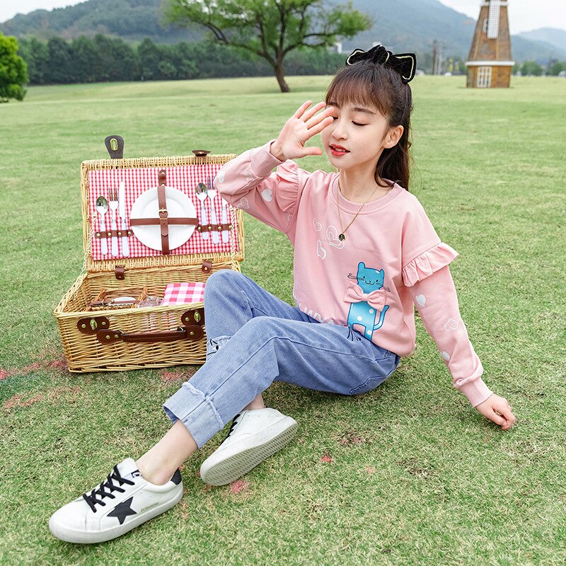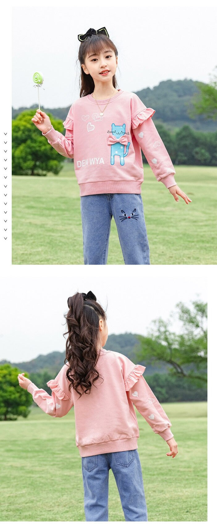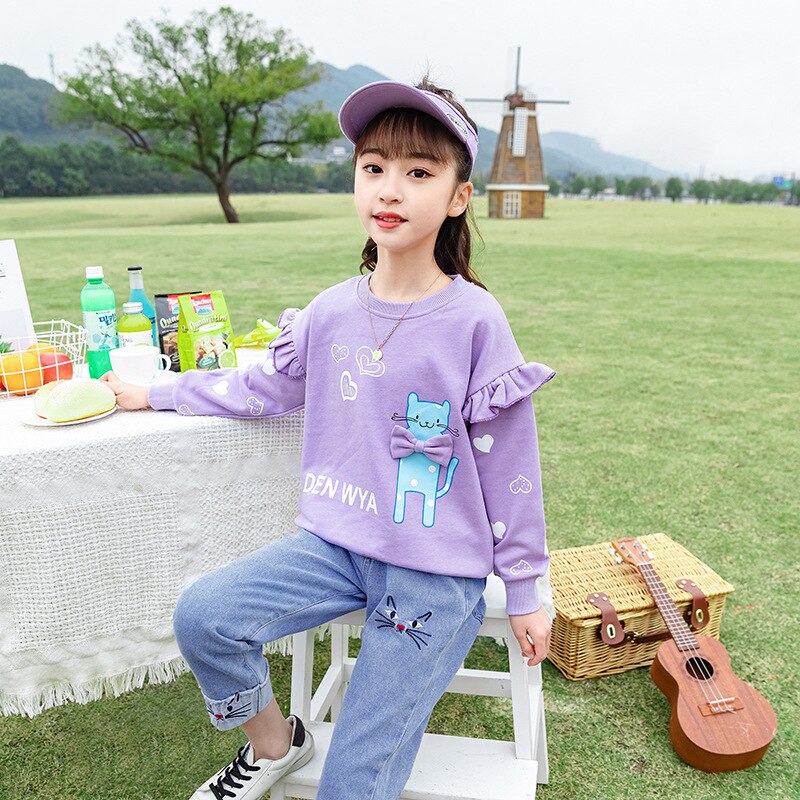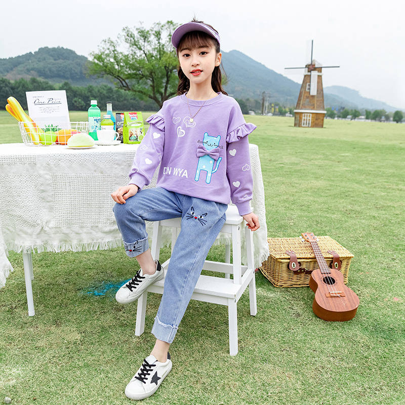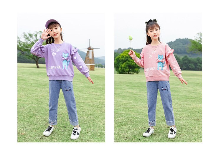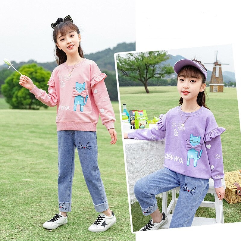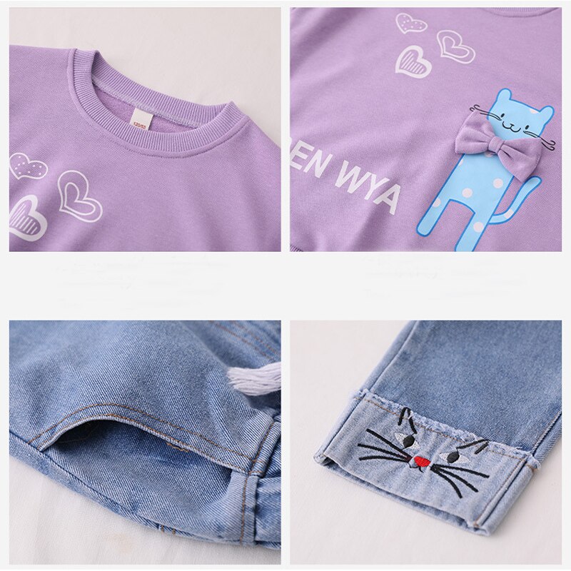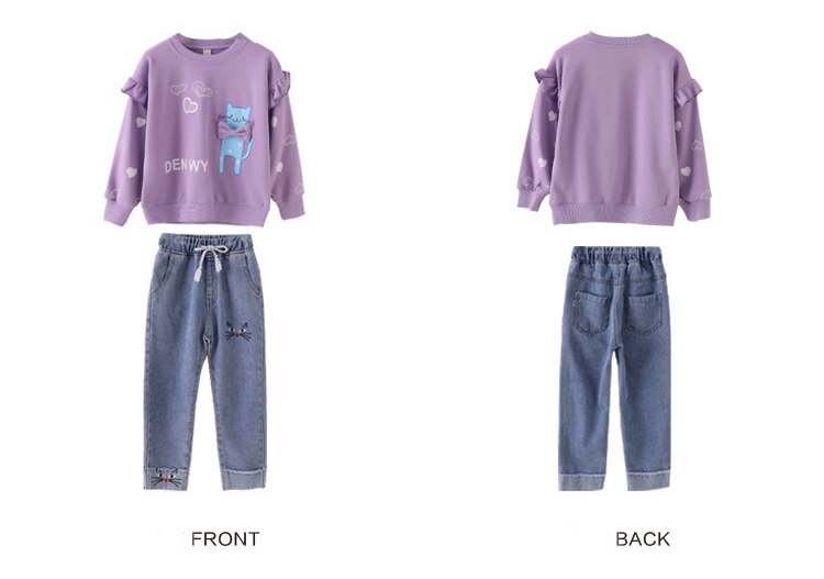 طقم جينز قطعتين ( بلوزة قطنية+ بنطلون جينز)