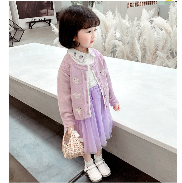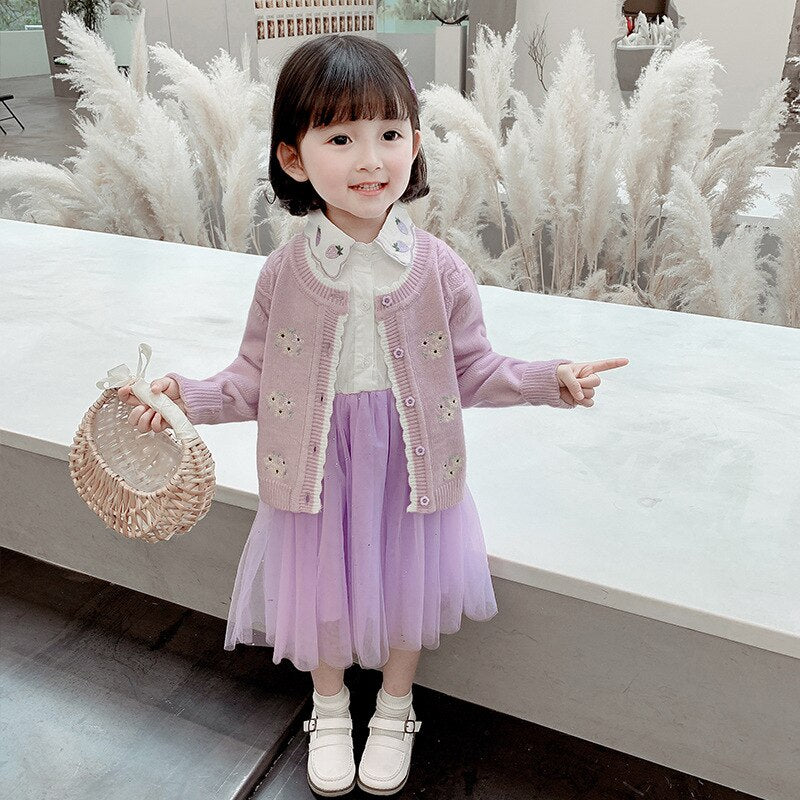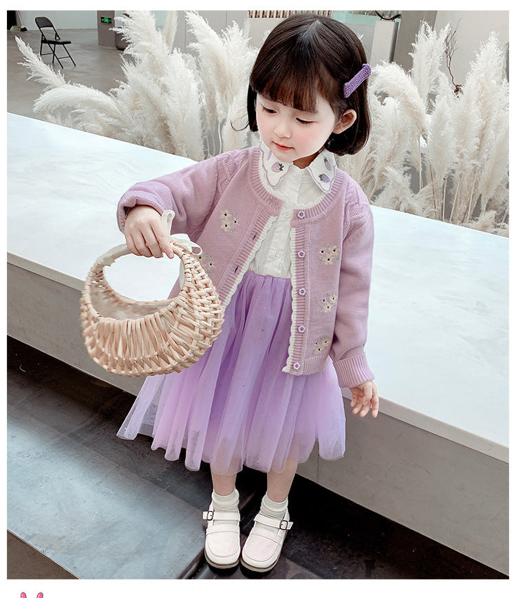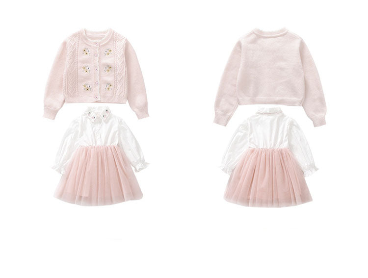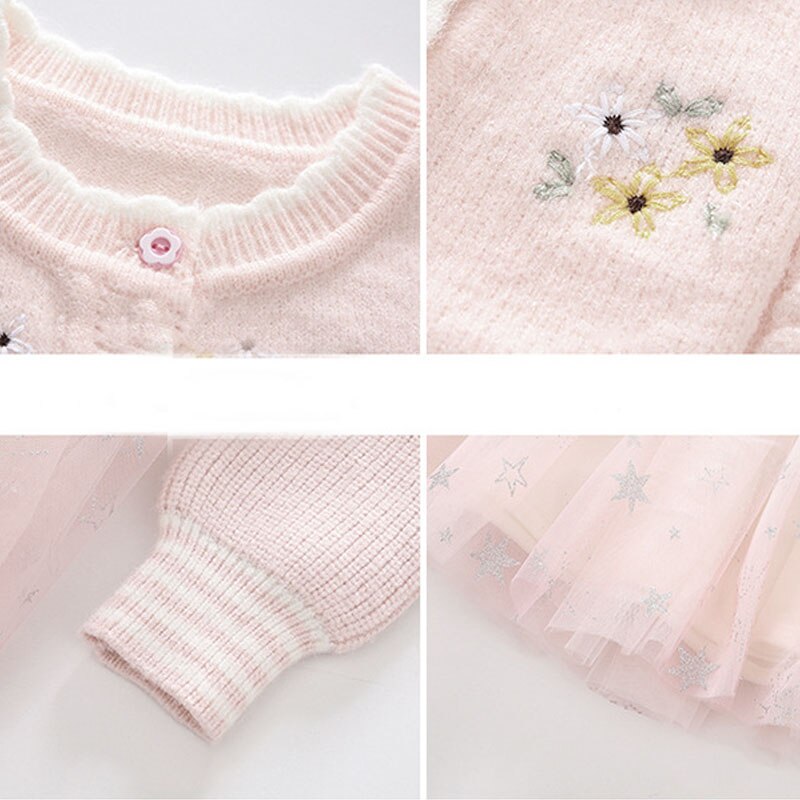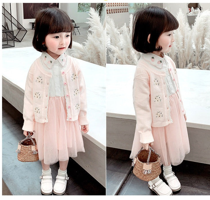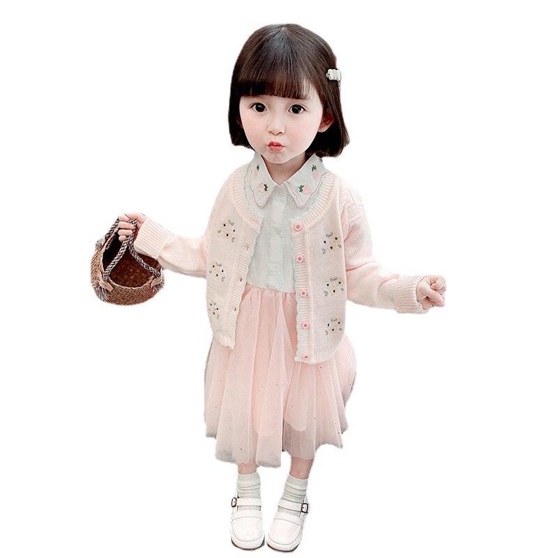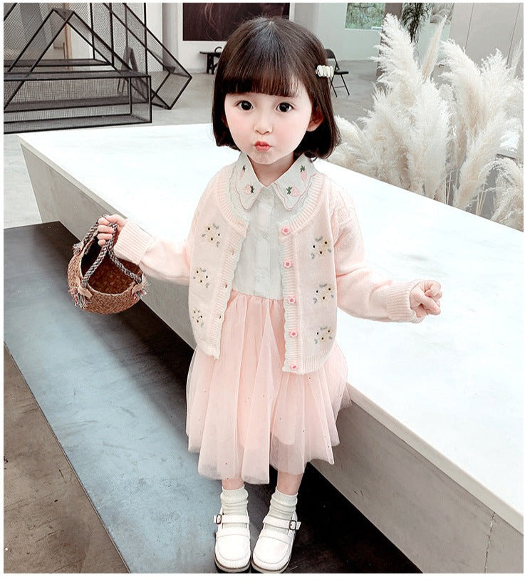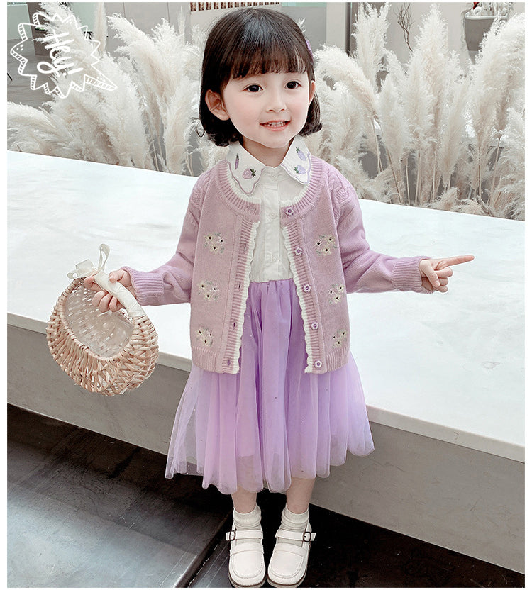 AO0519-125 فستان بناتي كم مع جكيت صوف مطرز