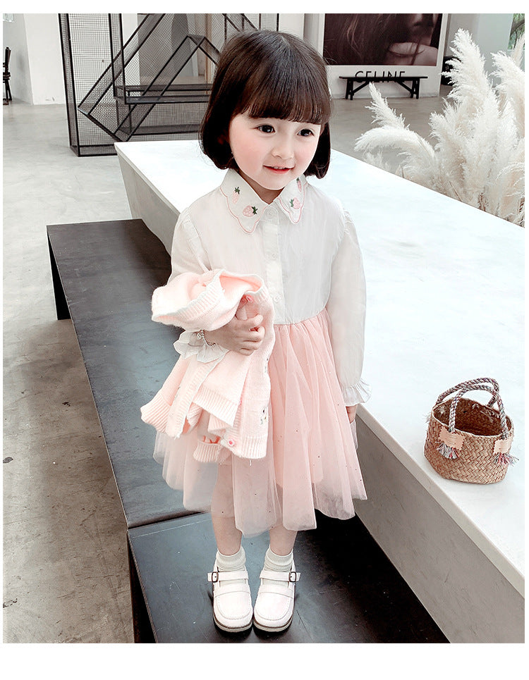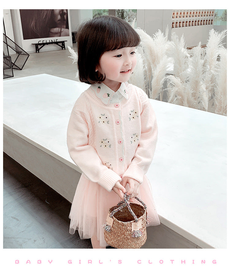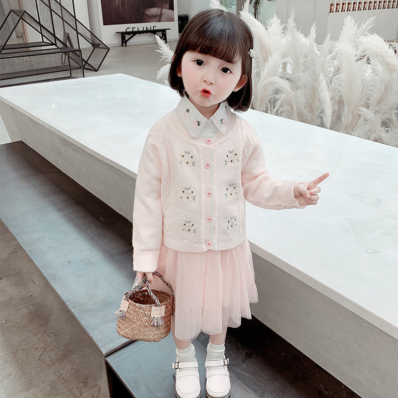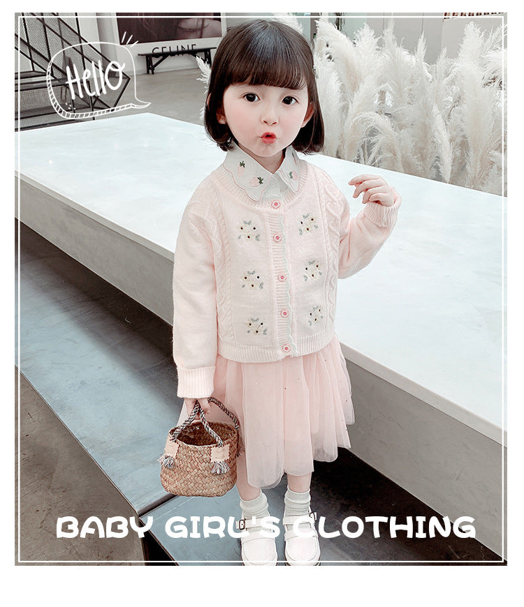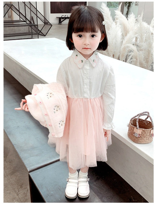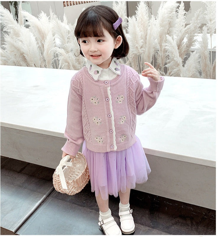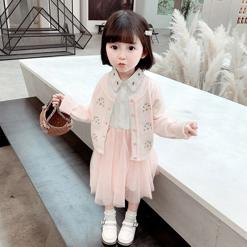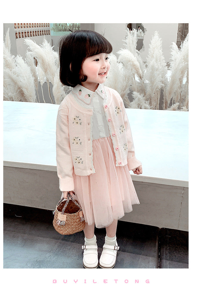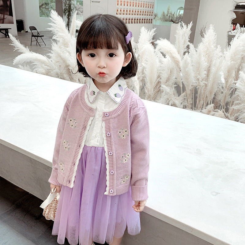 AO0519-125 فستان بناتي كم مع جكيت صوف مطرز