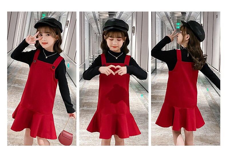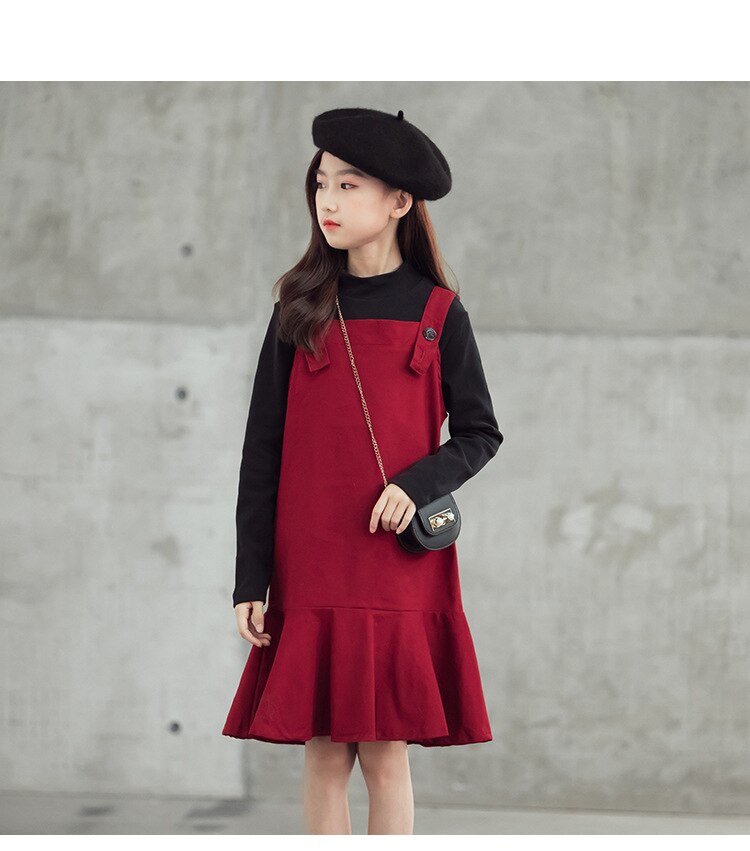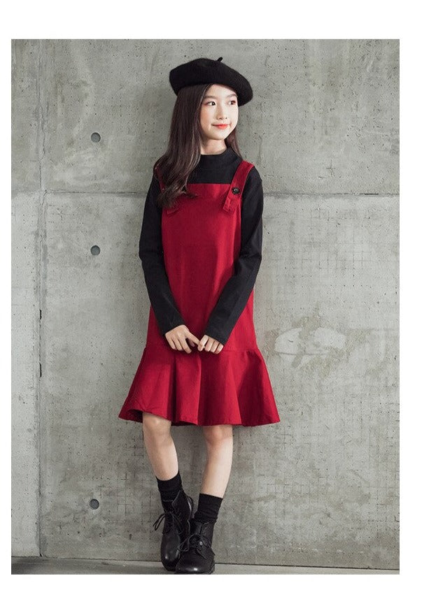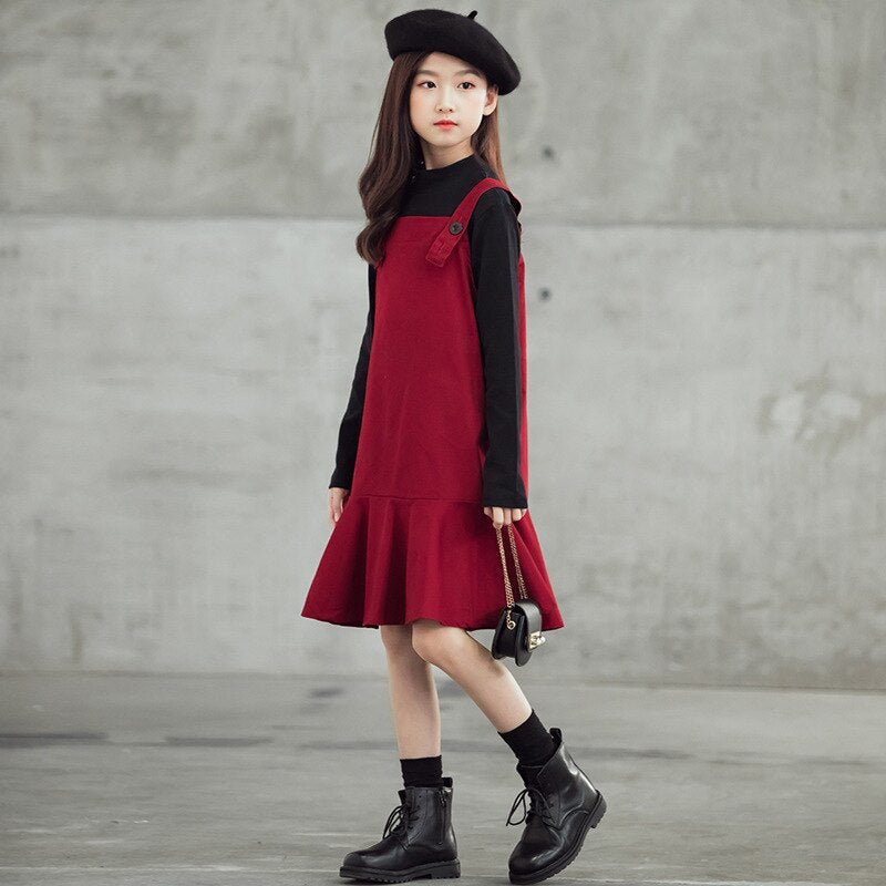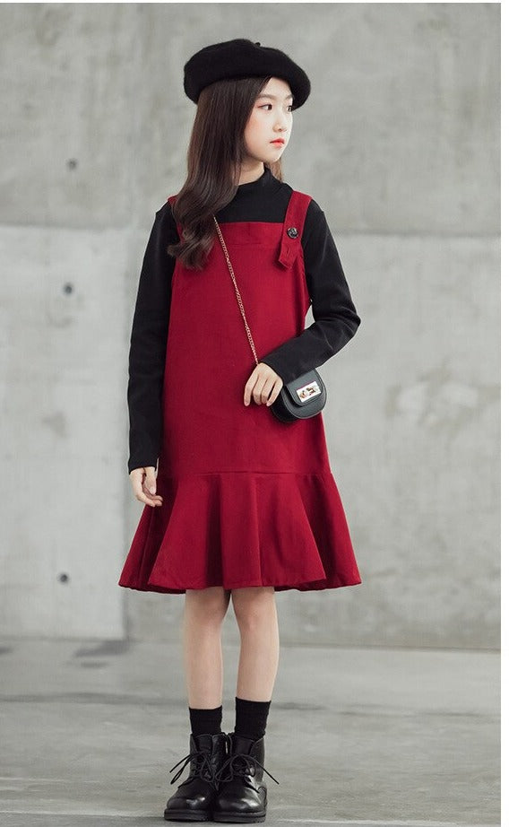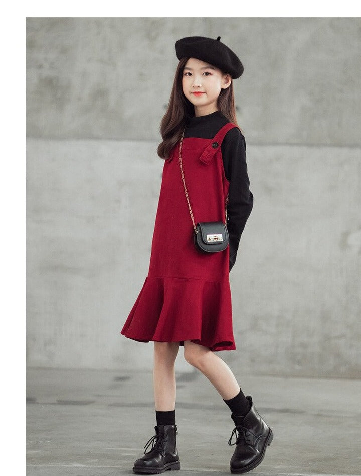 AO0519-130 فستان بناتي قطعتين ( فستان + بلوزة قطنية )