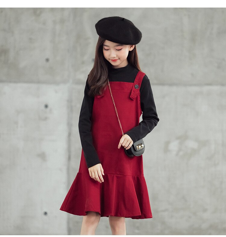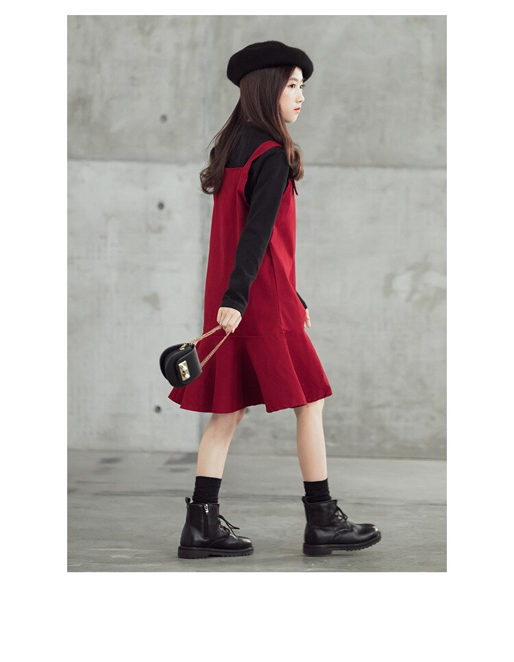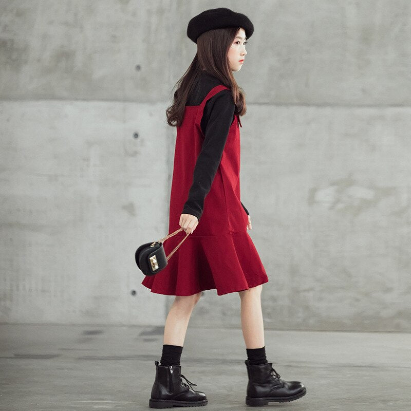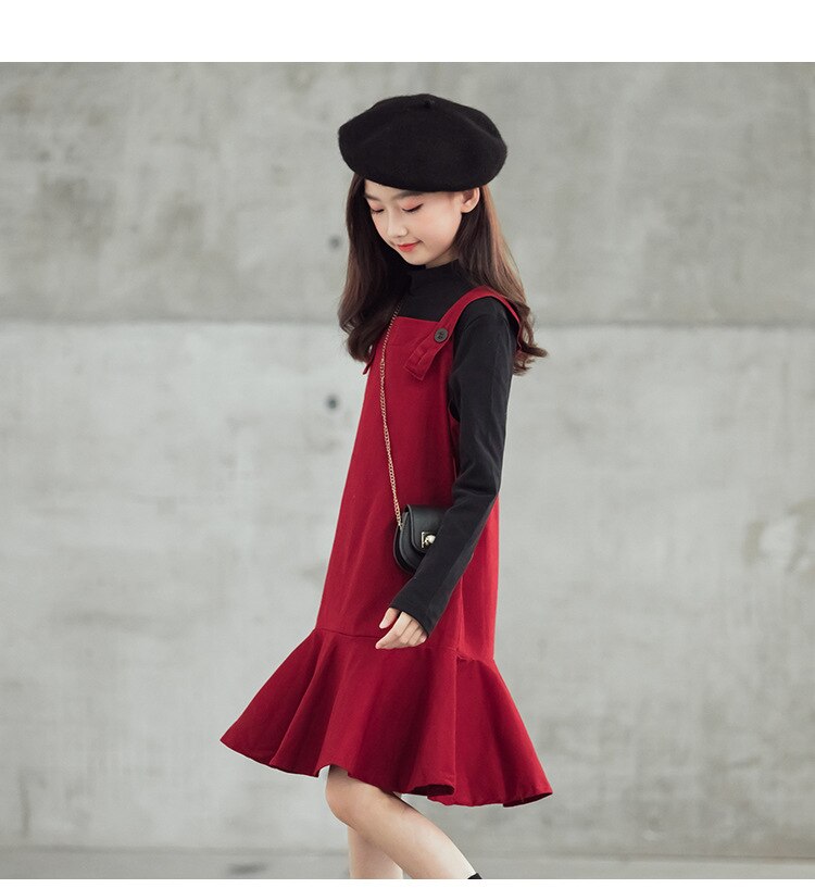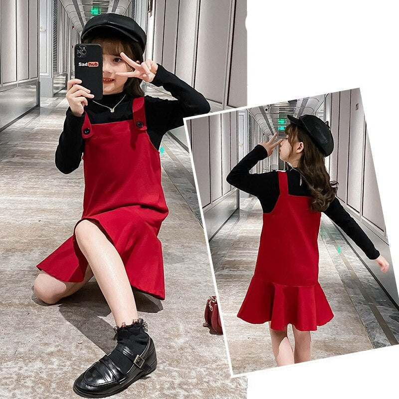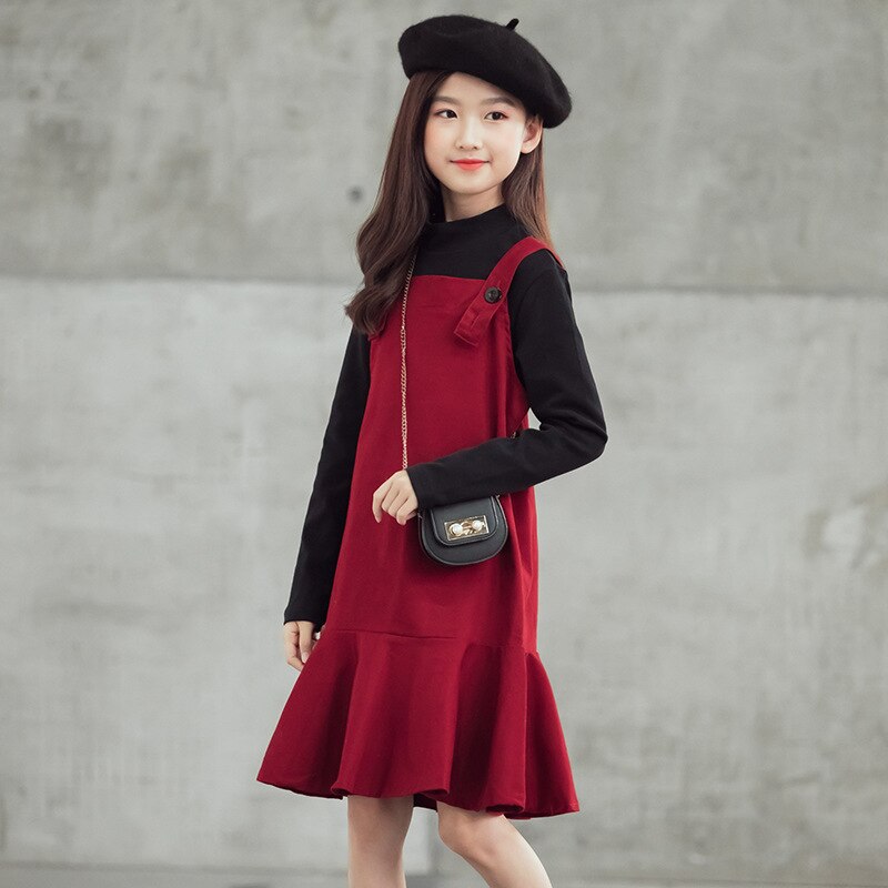 AO0519-130 فستان بناتي قطعتين ( فستان + بلوزة قطنية )