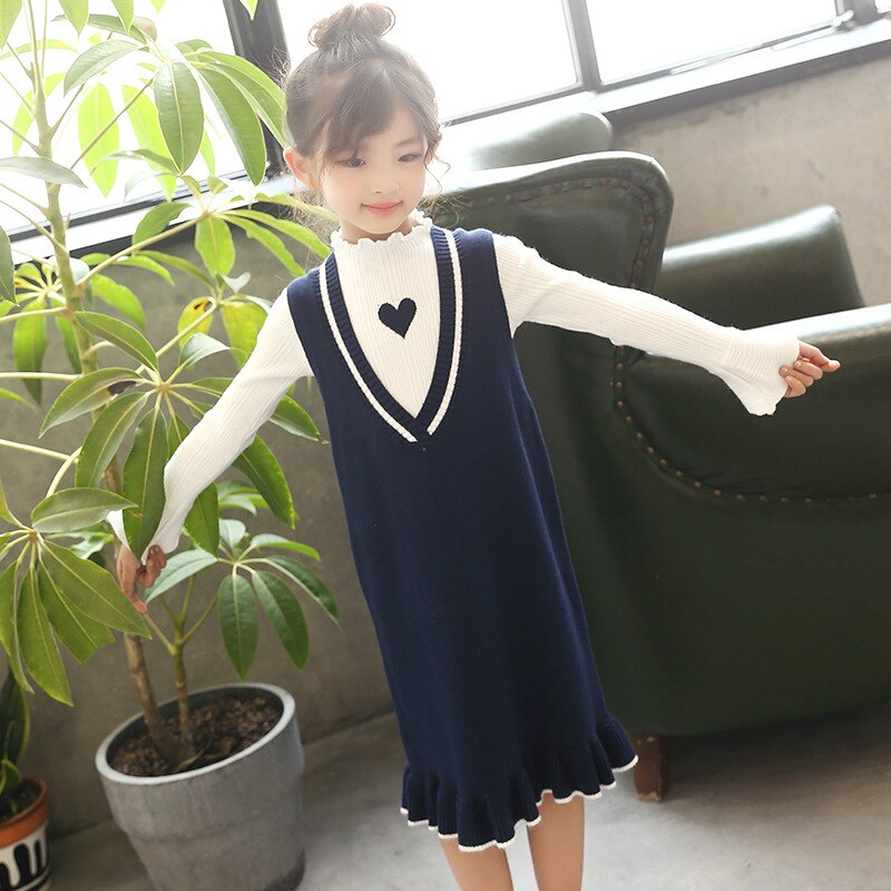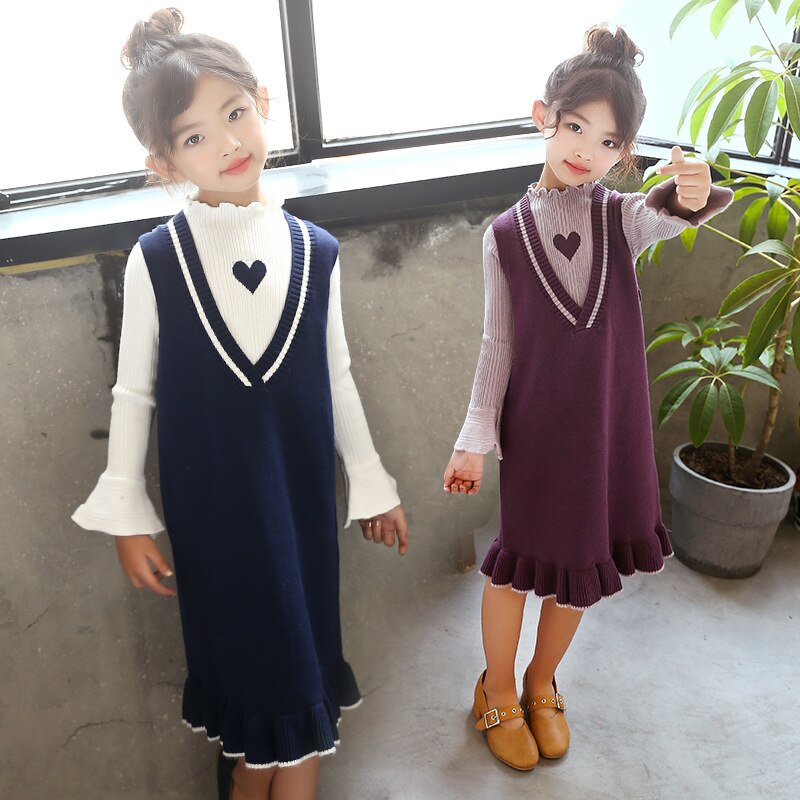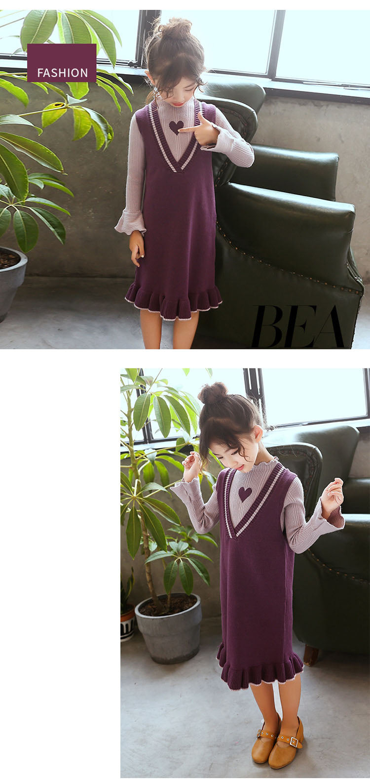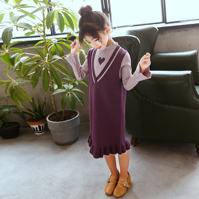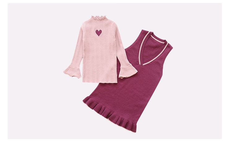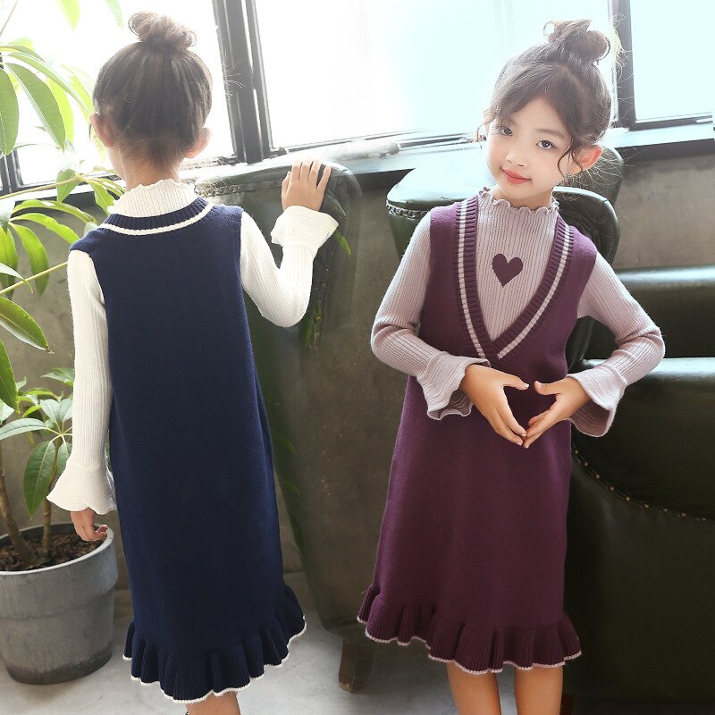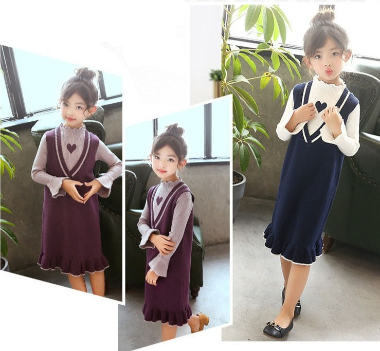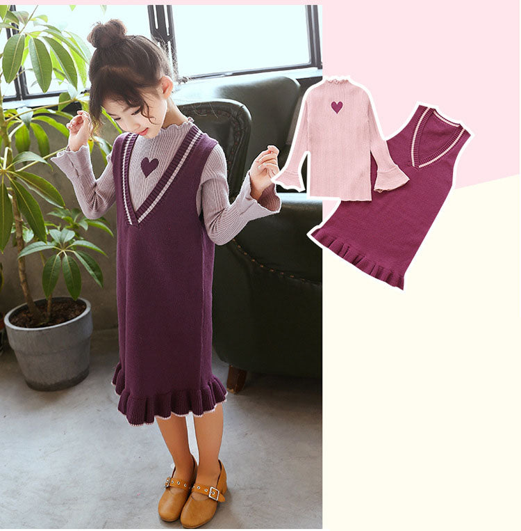 فستان خريفي شتوي بناتي صوف دافي وناعم قطعتين