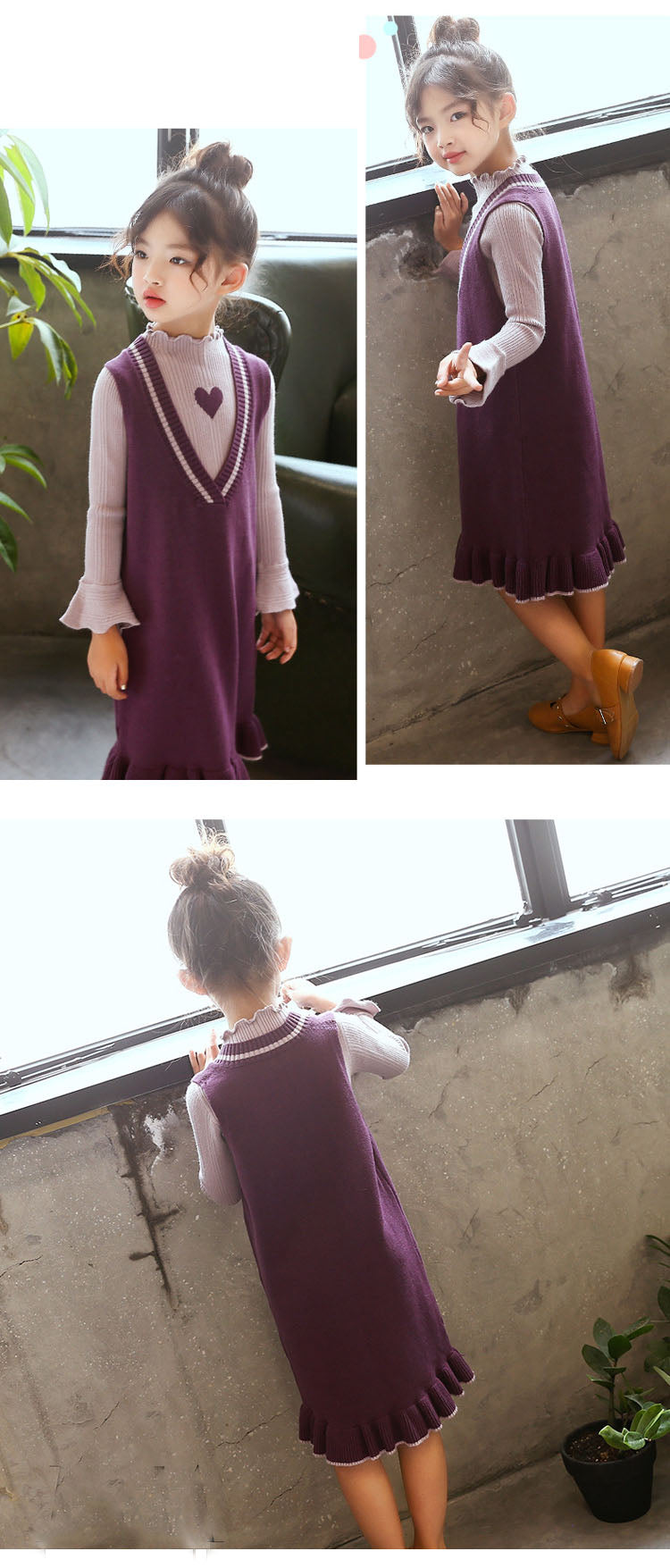 AO0519-53 فستان خريفي شتوي بناتي صوف دافي وناعم قطعتين