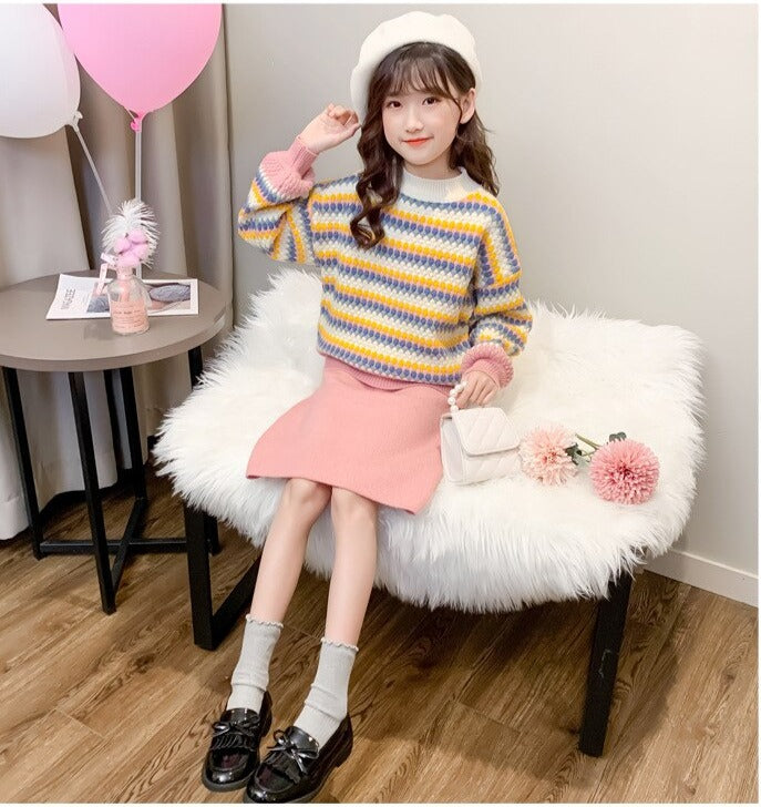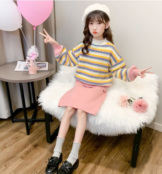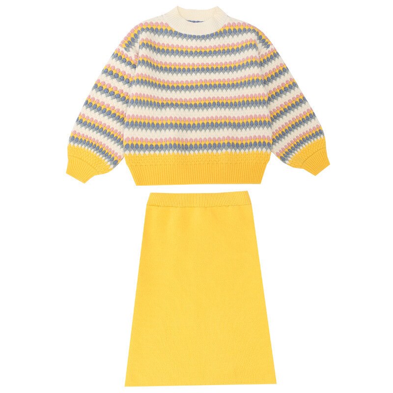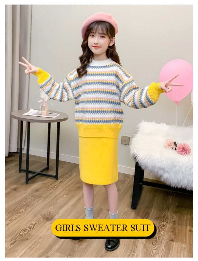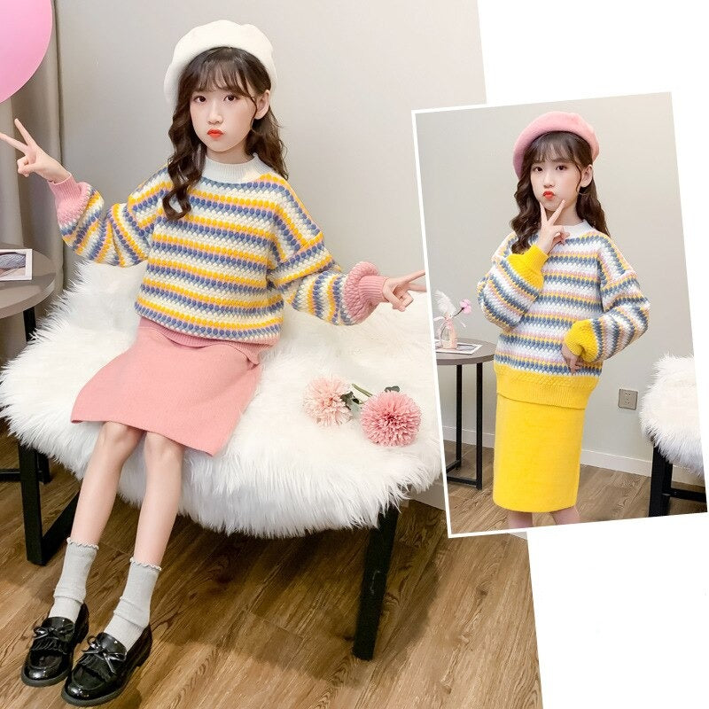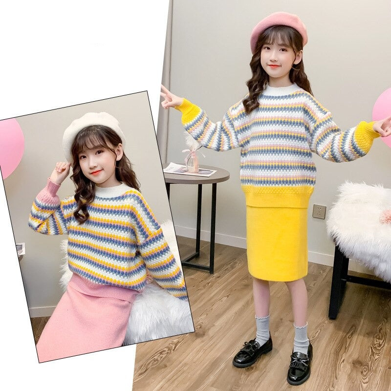 طقم شتوي صوف ناعم ودافي قطعتين ( بلوزة + تنورة)