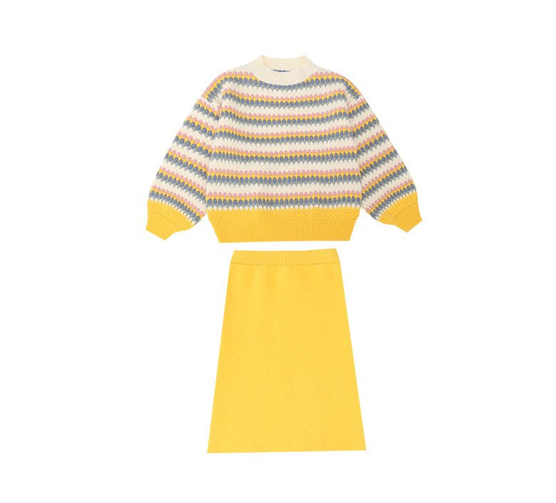 AO0519-74 طقم شتوي صوف ناعم ودافي قطعتين ( بلوزة + تنورة)