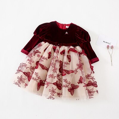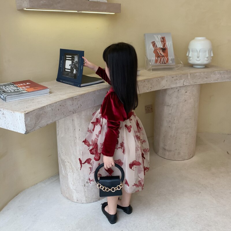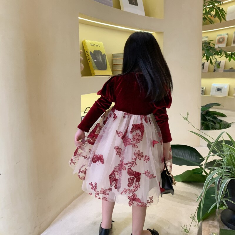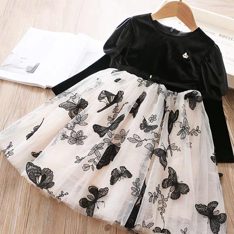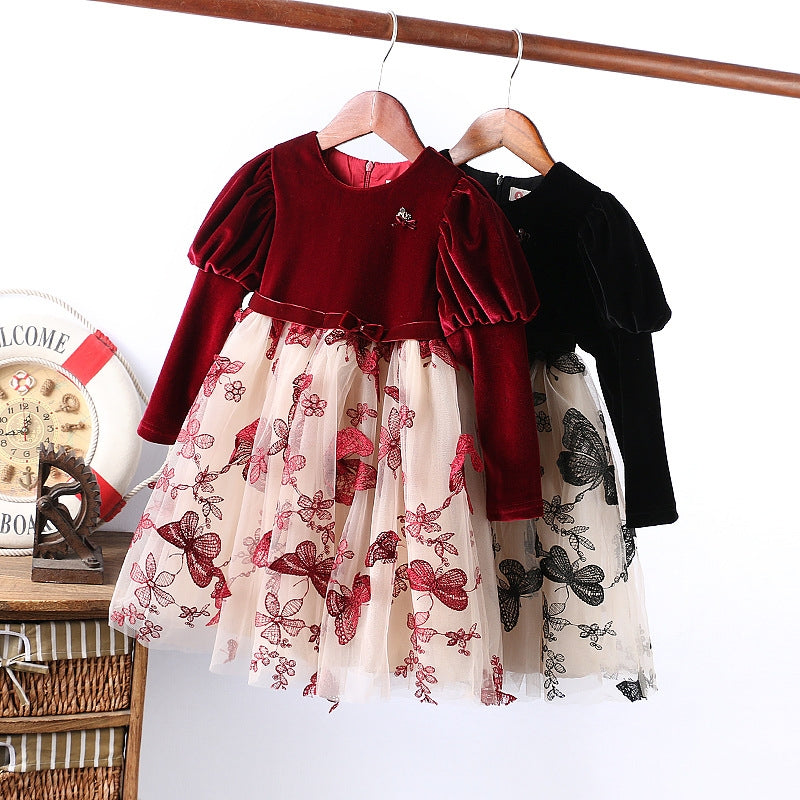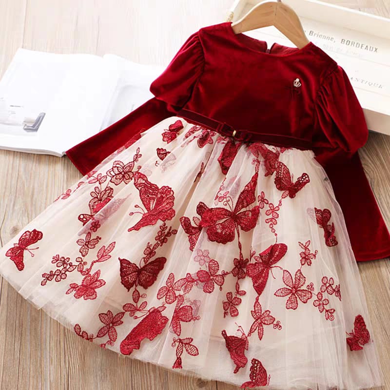 AO0519-75 فستان مخمل تقيل ومزين بالفراشات