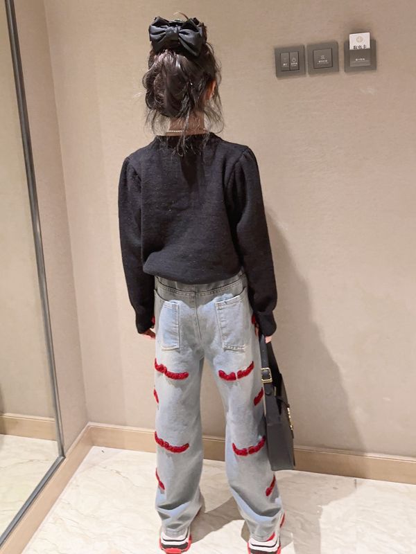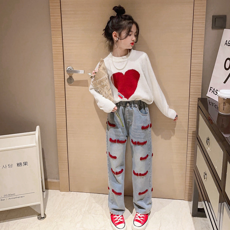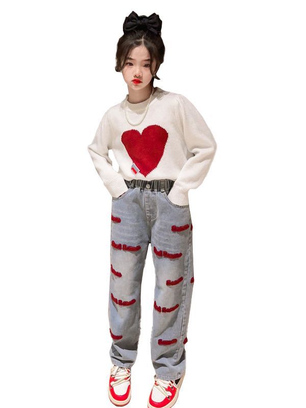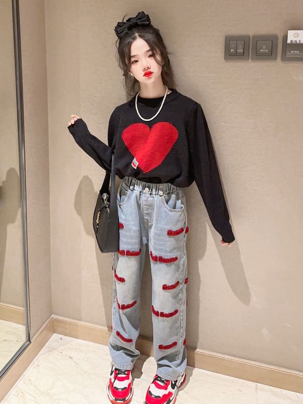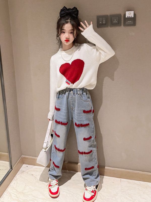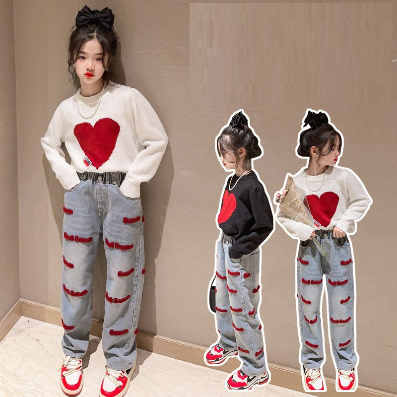 AO0712-20 طقم خريفي دافي ( بلوزة صوف + بنطلون مطرز بالصوف)