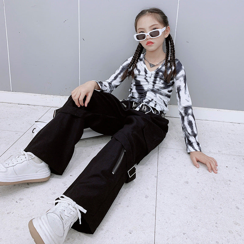 AO0712-21 طقم بناتي ( بلوزة زبدة ناعمة + بنطلون كتان + حزام للخصر)
