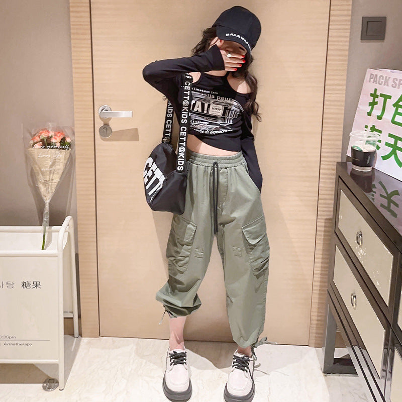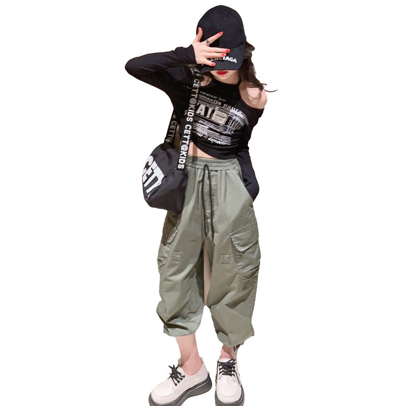 AO0712-24 طقم بناتي قطني قطعتين ( بلوزة قطنية + بنطلون كتان )