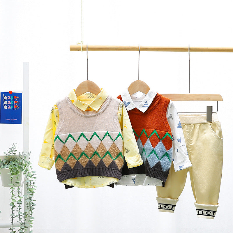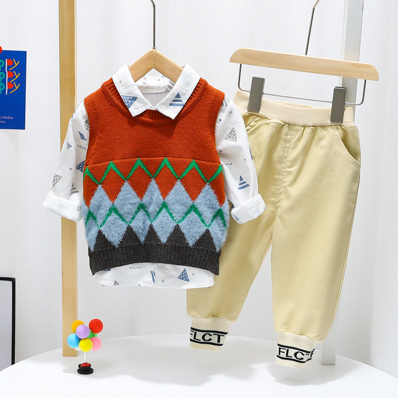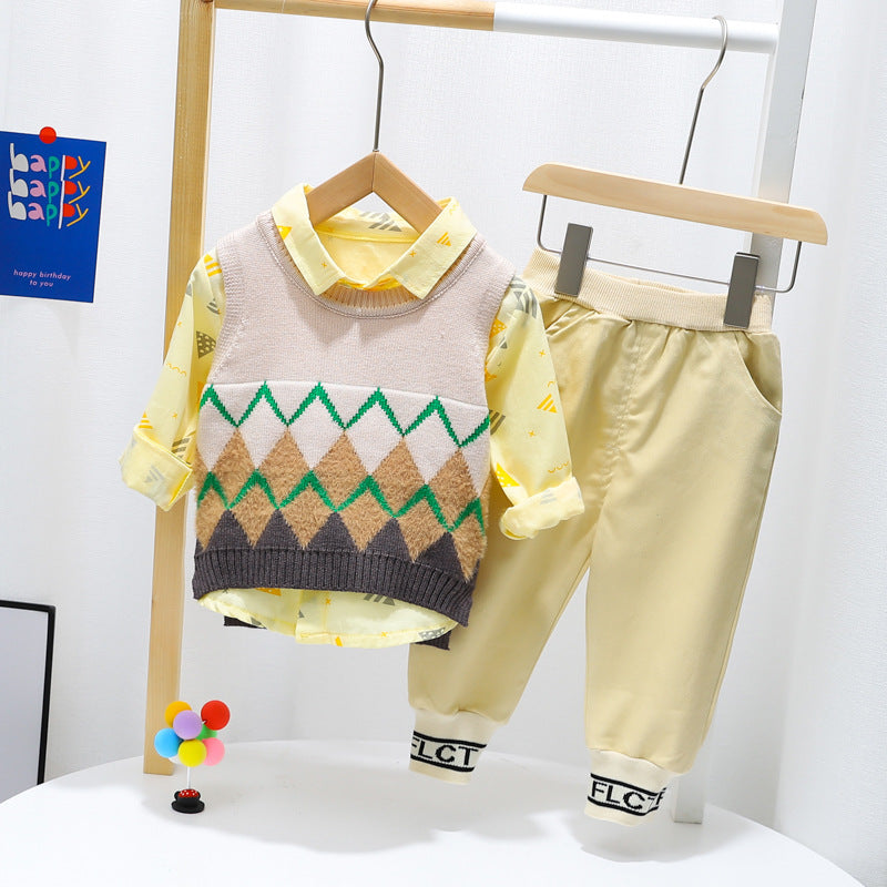 طقم ولادي 3 قطع ( قميص + فست + بنطلون )
