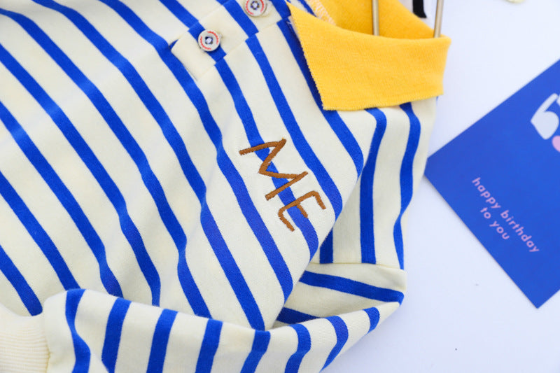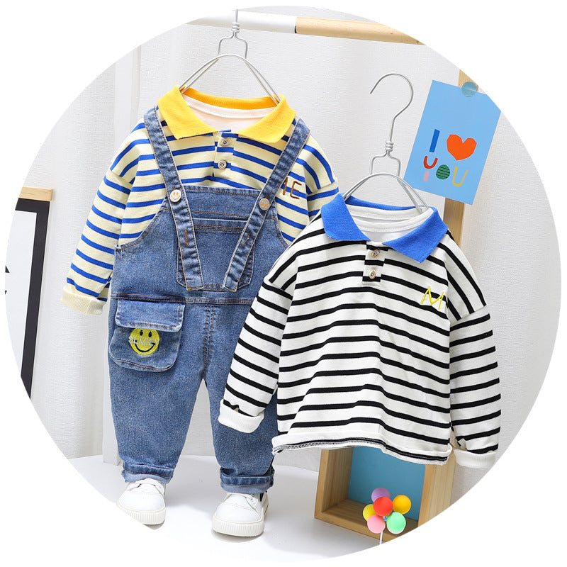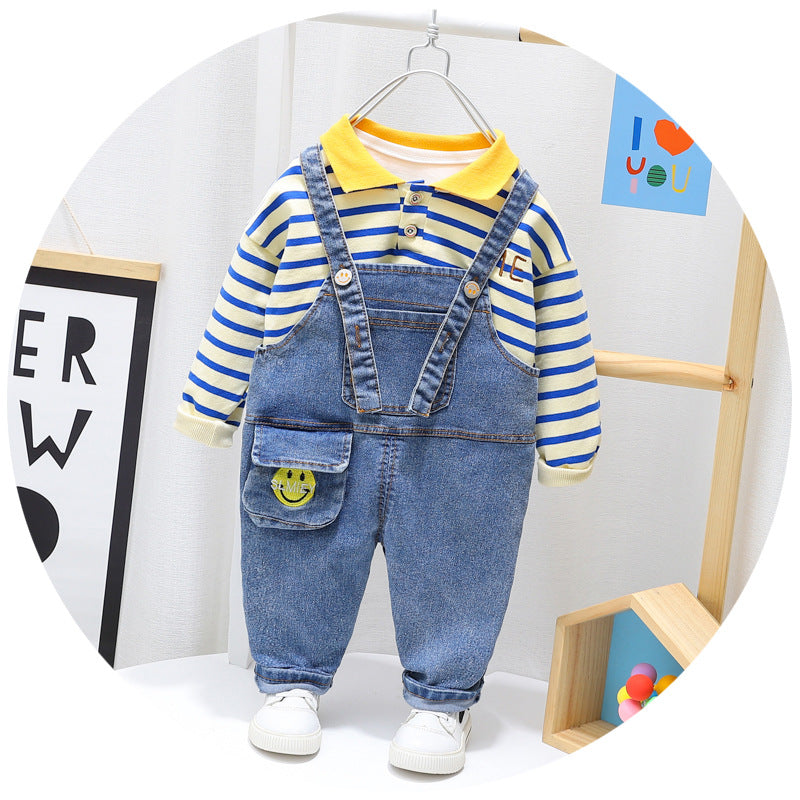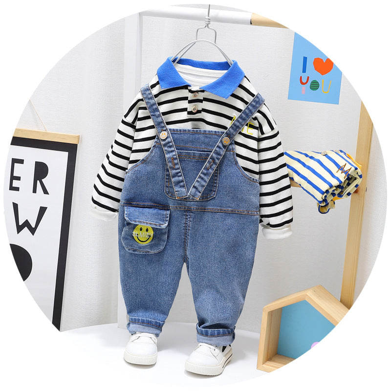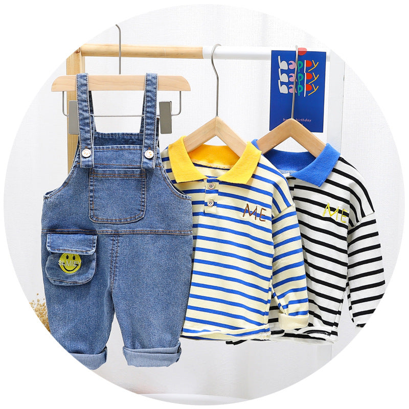 طقم افرهول جينز + بلوزة قطنية مخططة