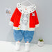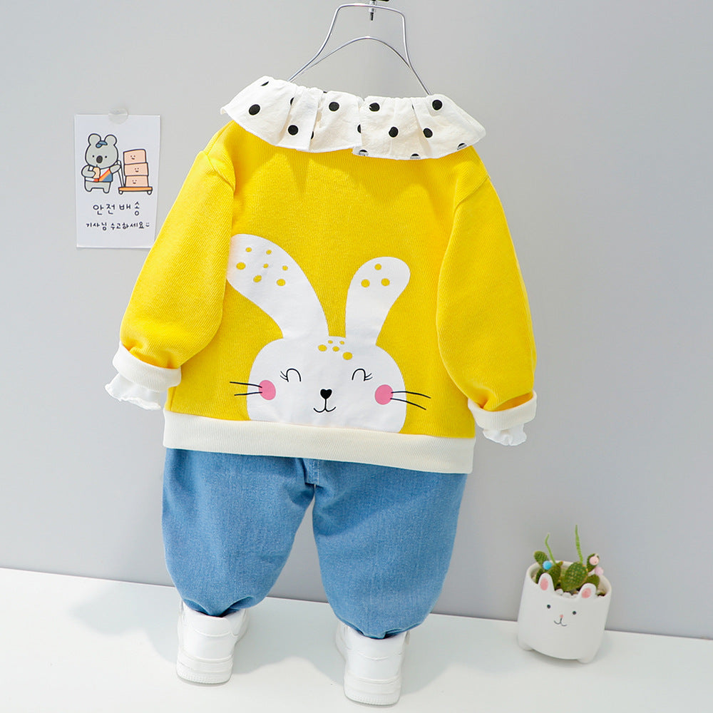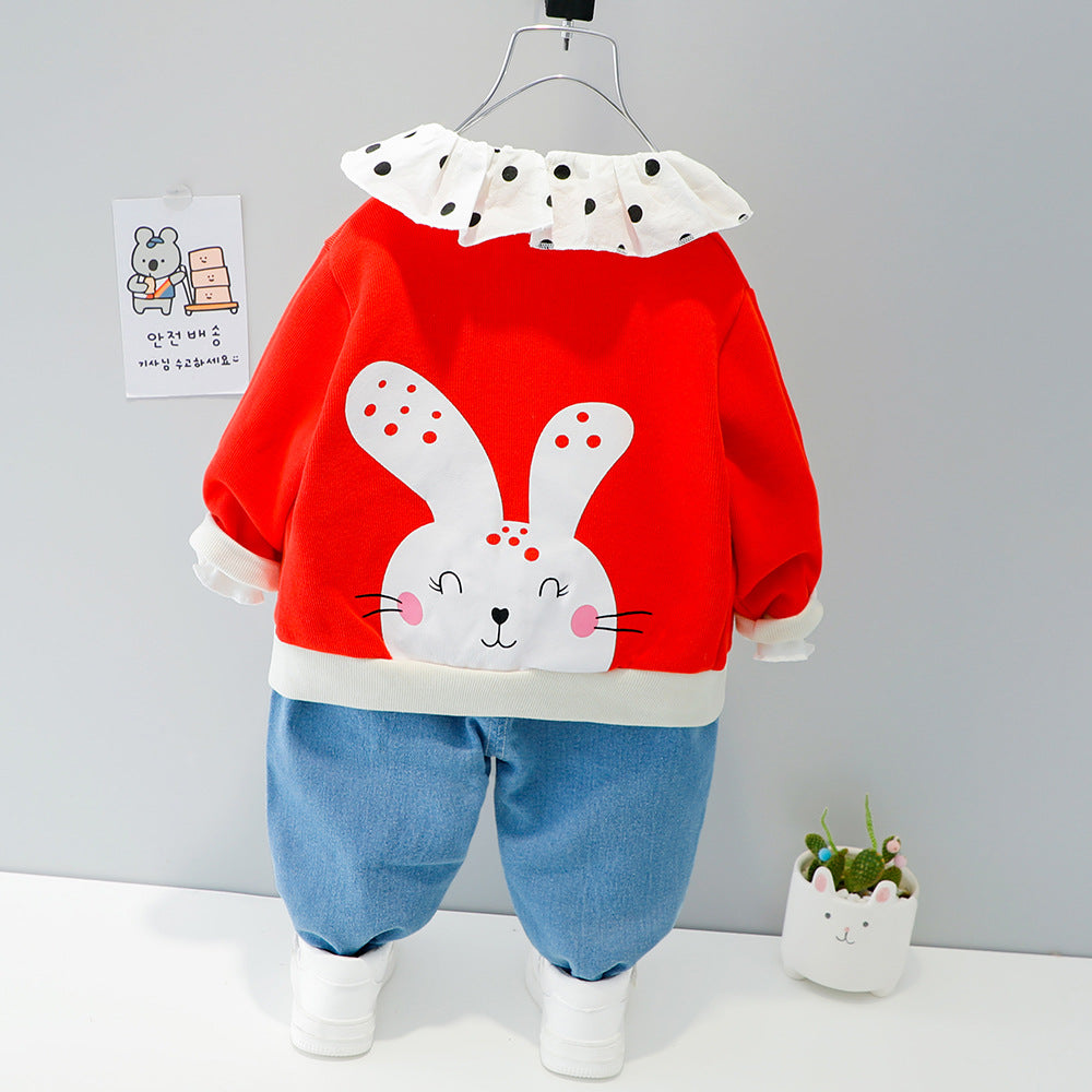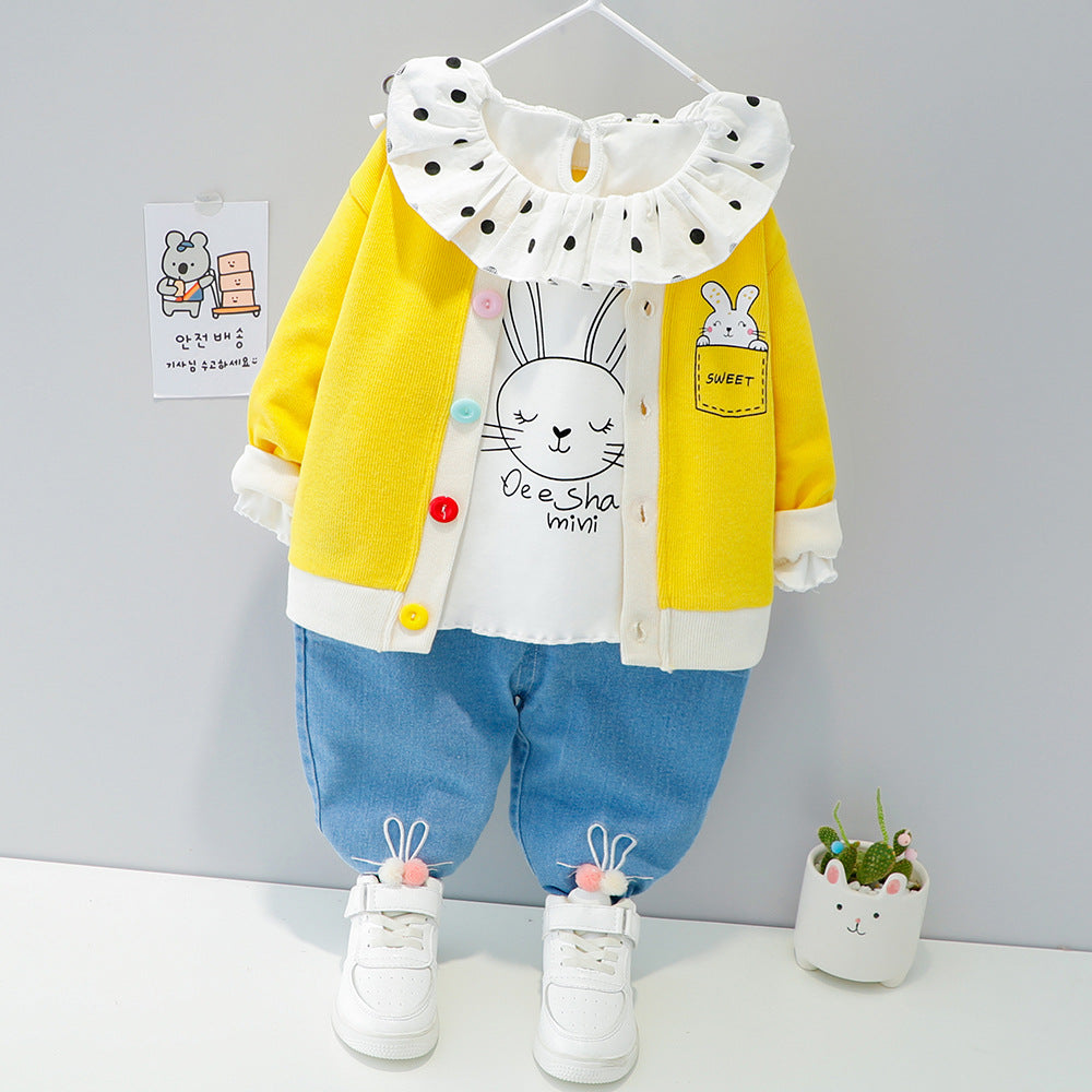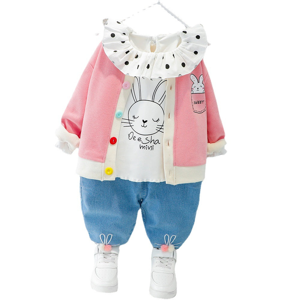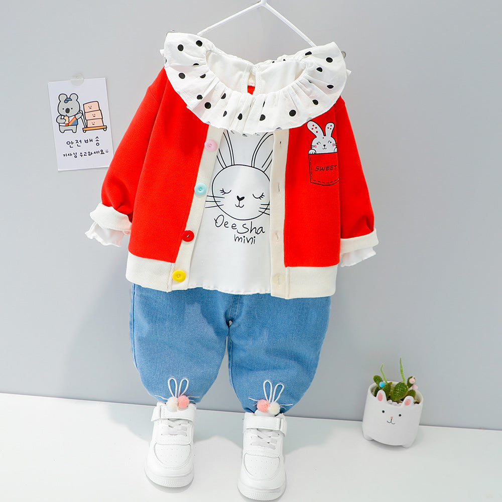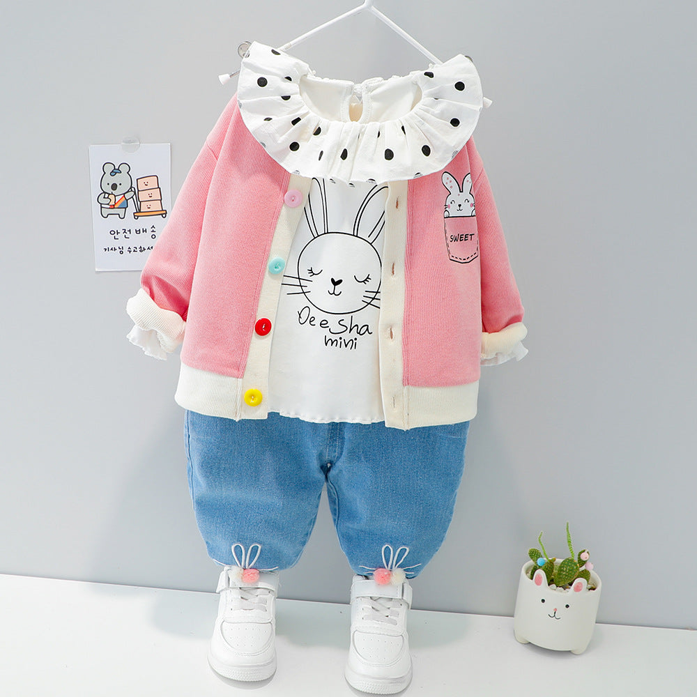 طقم بناتي 3 قطع ( بلوزة + جكيت + بنطلون جينز)
