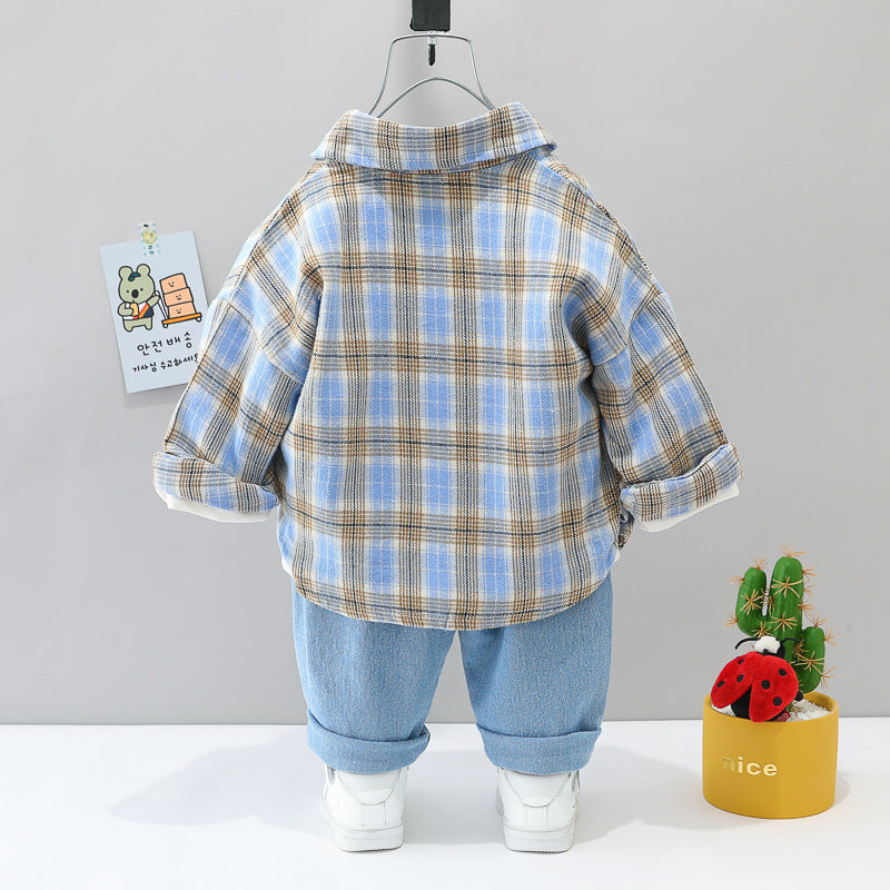 طقم 3 قطع ( بلوزة + قميص + بنطلون جينز )