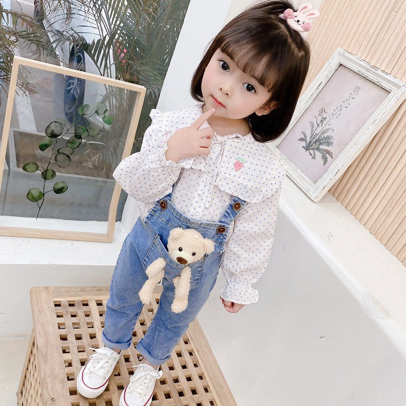 طقم أفرهول مع دبدوب ( قميص + أفرهول جينز ناعم)
