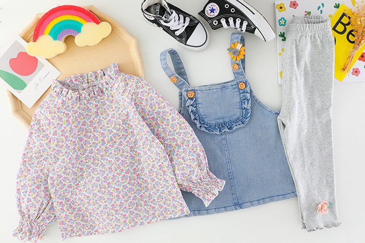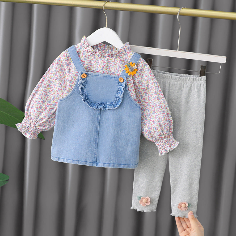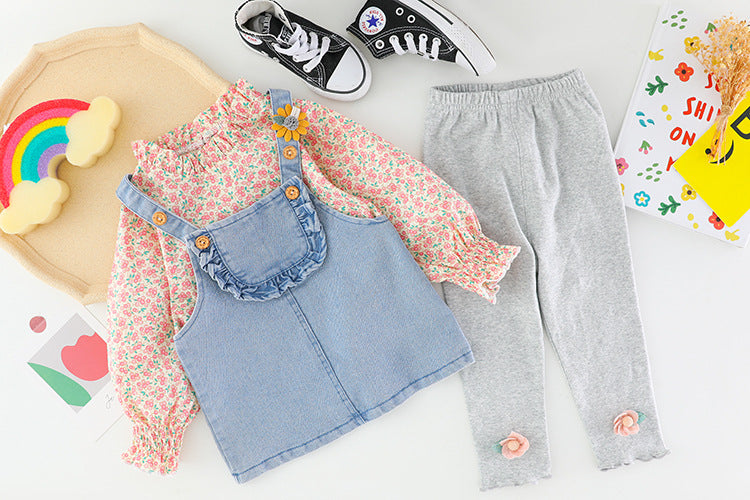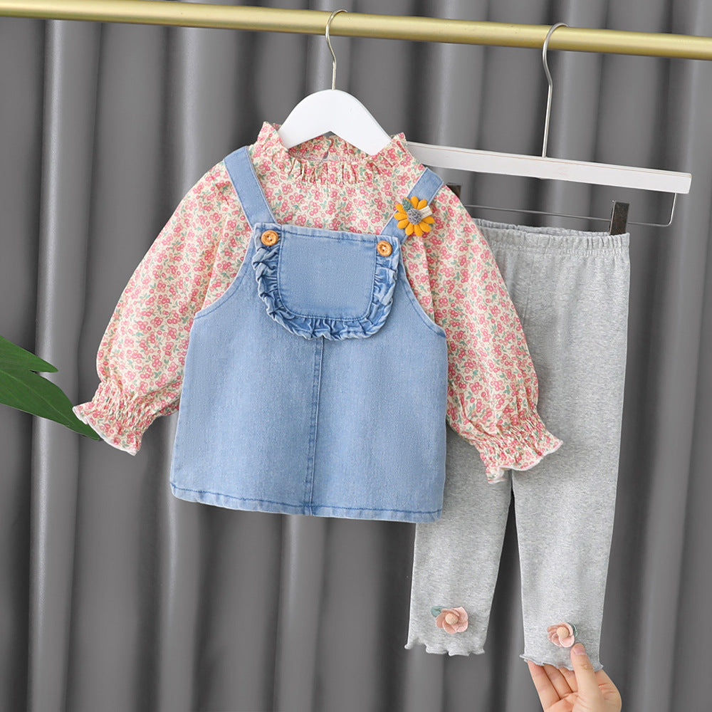 طقم 3 قطع ( قميص مورد + أفرهول جينز ناعم + فيزون قطني مريح)