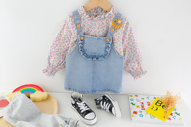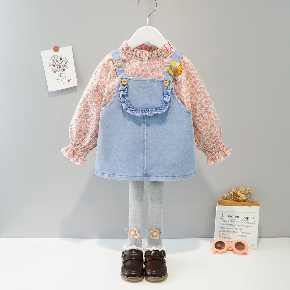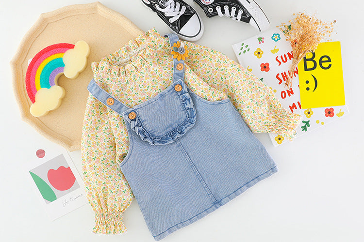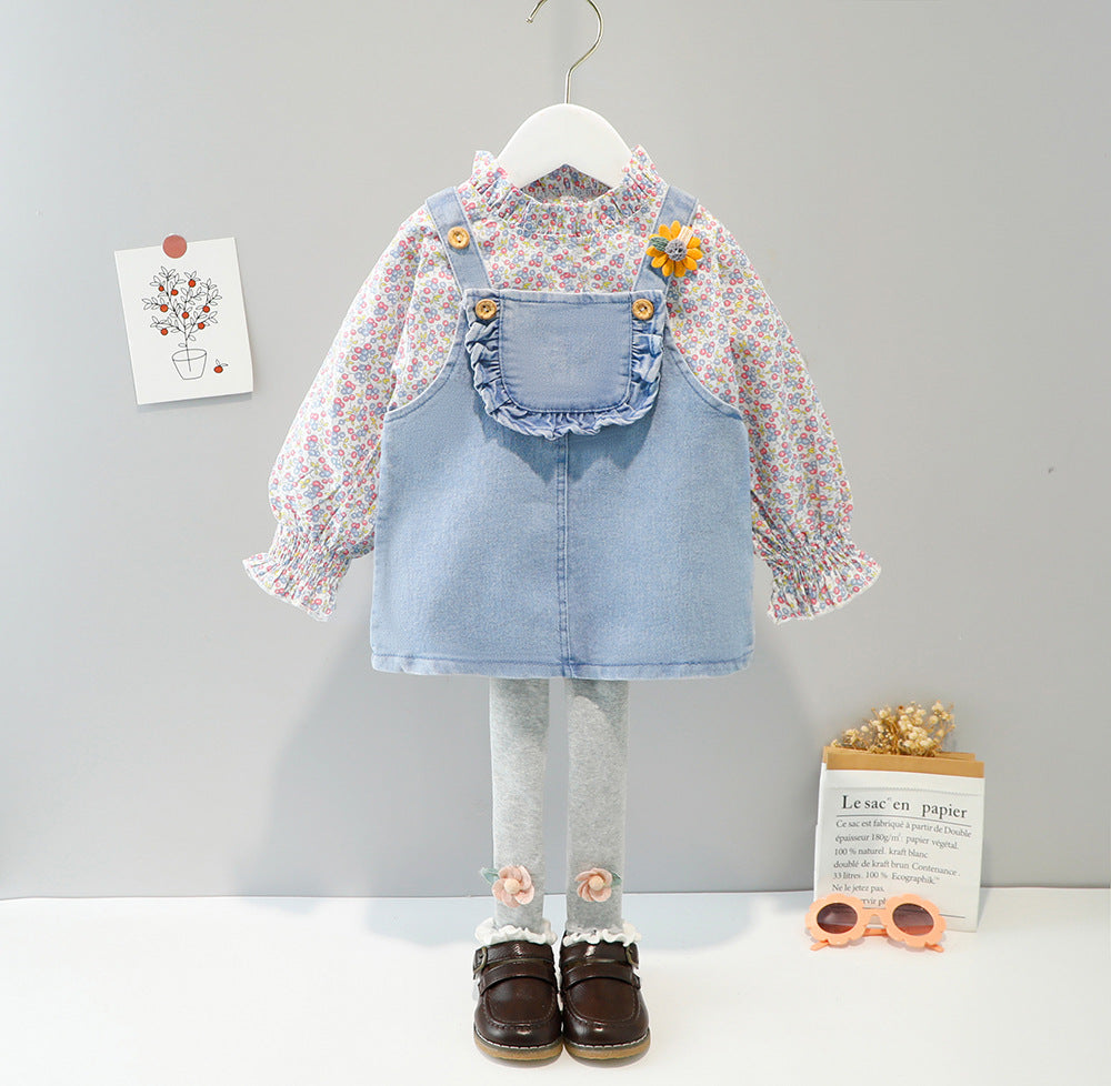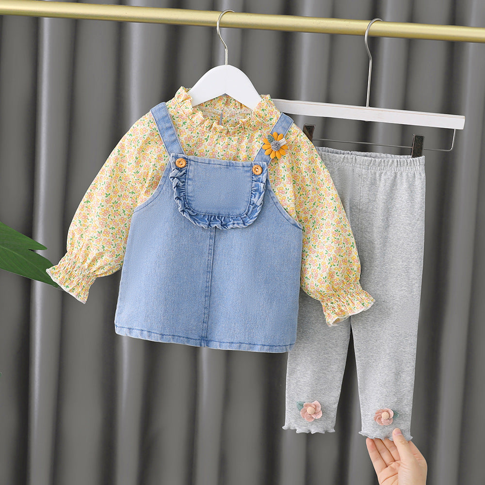 طقم 3 قطع ( قميص مورد + أفرهول جينز ناعم + فيزون قطني مريح)