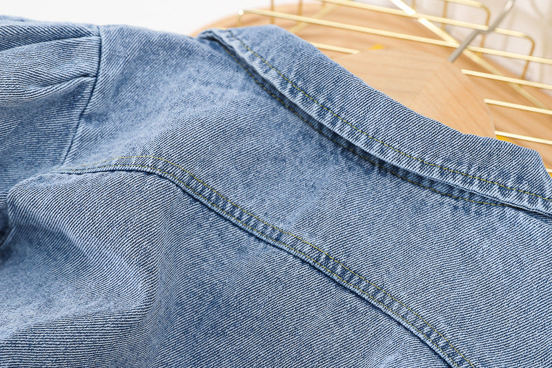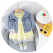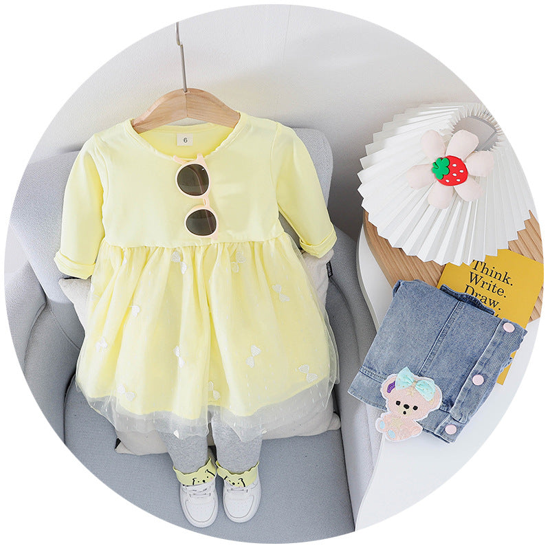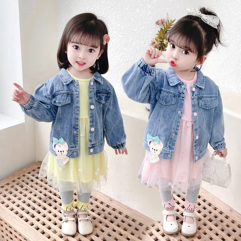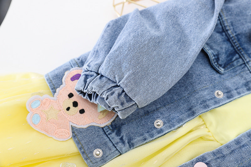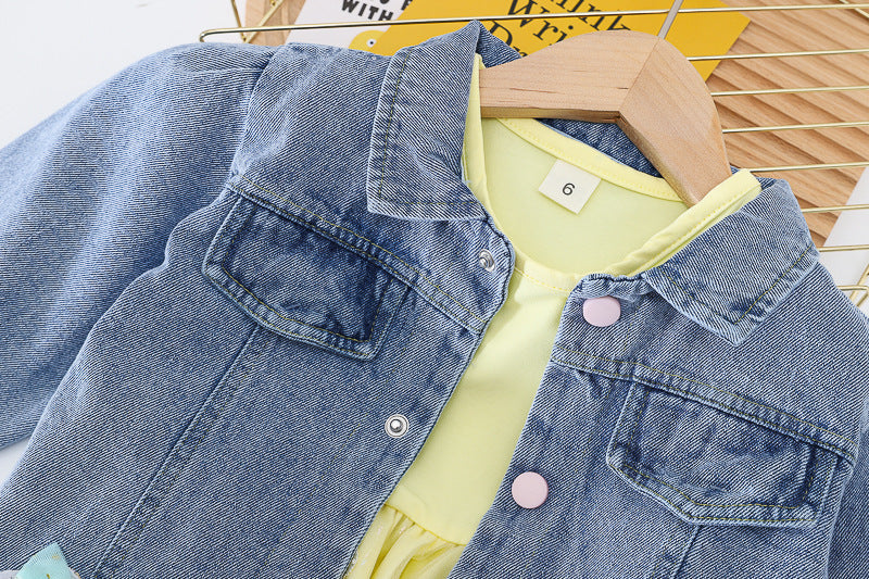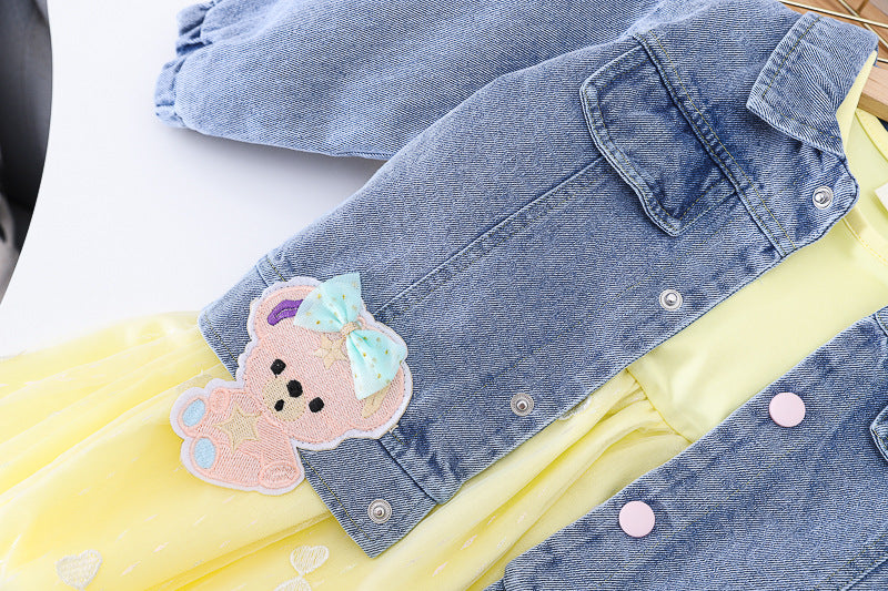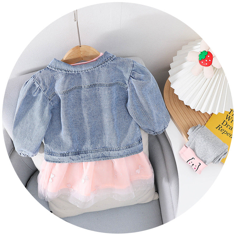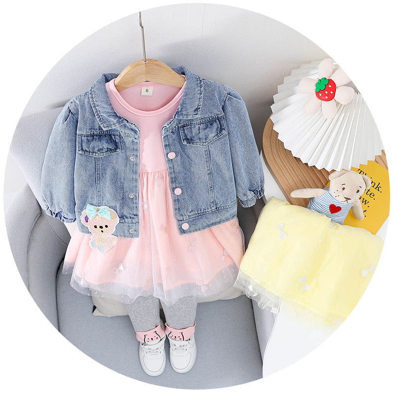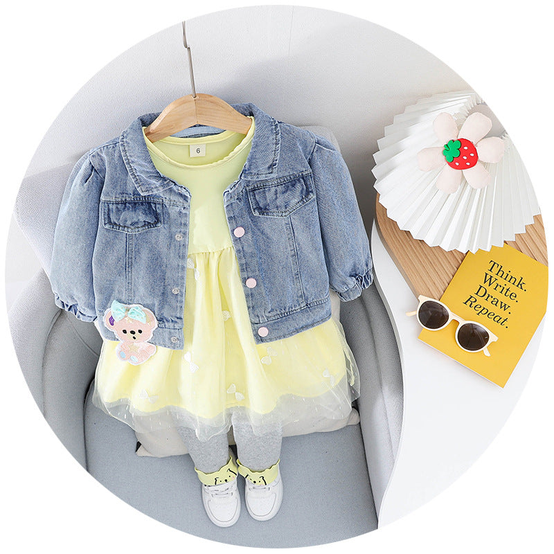 AS-2218G طقم 3 قطع ( فستان كم كامل + جاكيت جينز + فيزون قطني) خريفي وربيعي دافئ