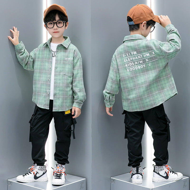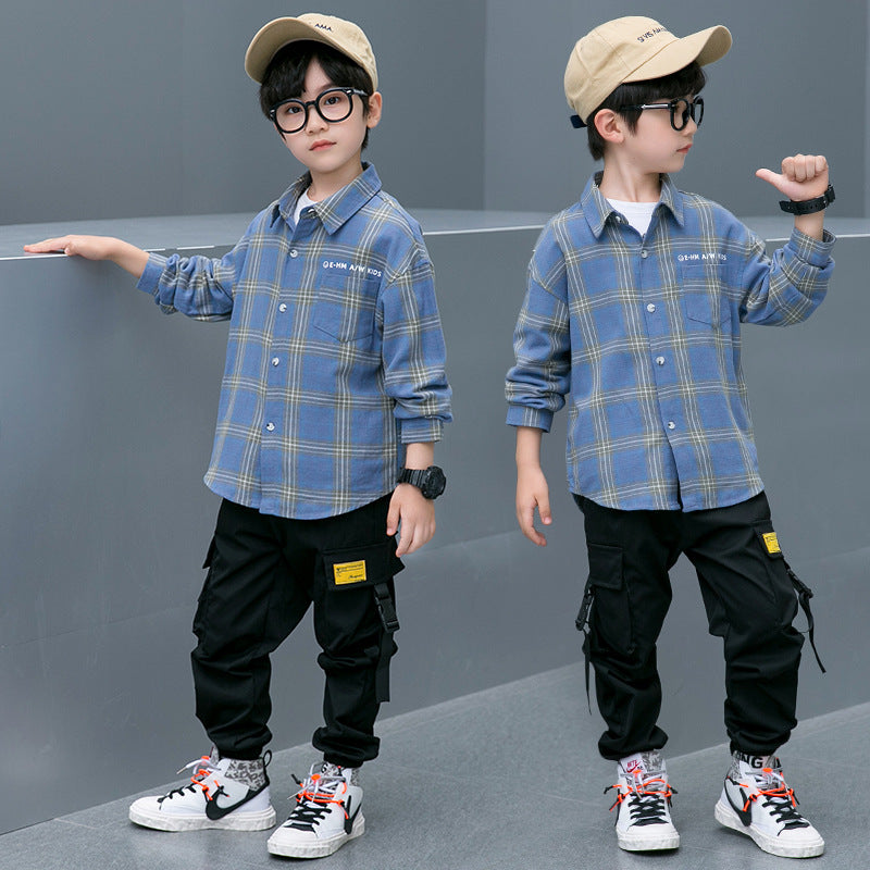 طقم ولادي قطعتين ( قميص كروهات مصوف + بنطلون )