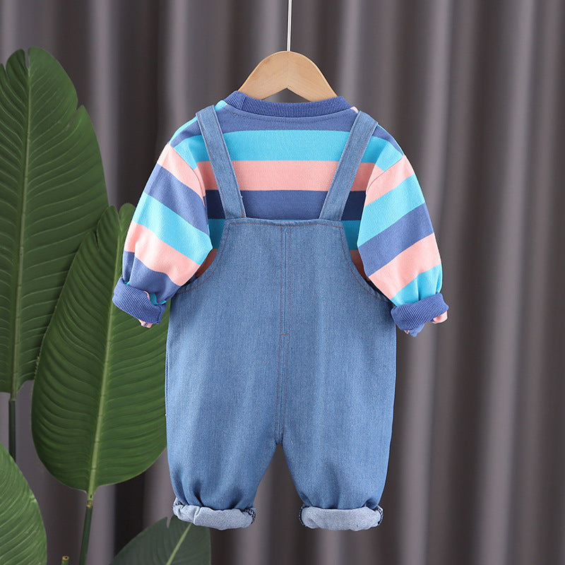 طقم قطني قطعتين  ( بلوزة قطنية + أفرهول جينز )