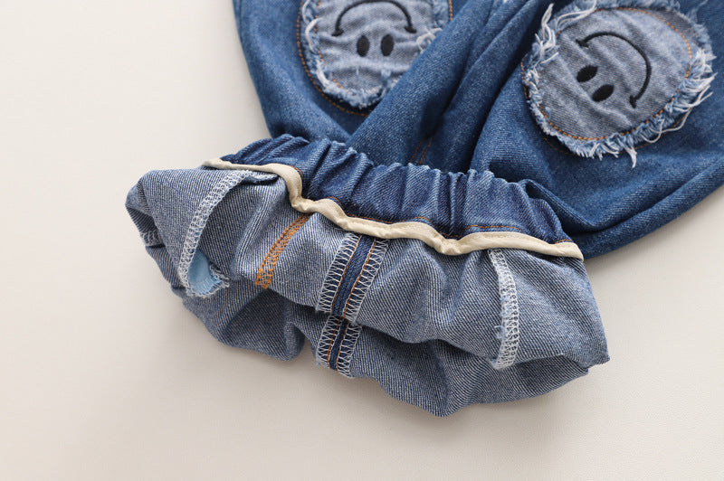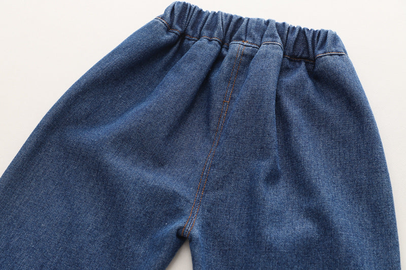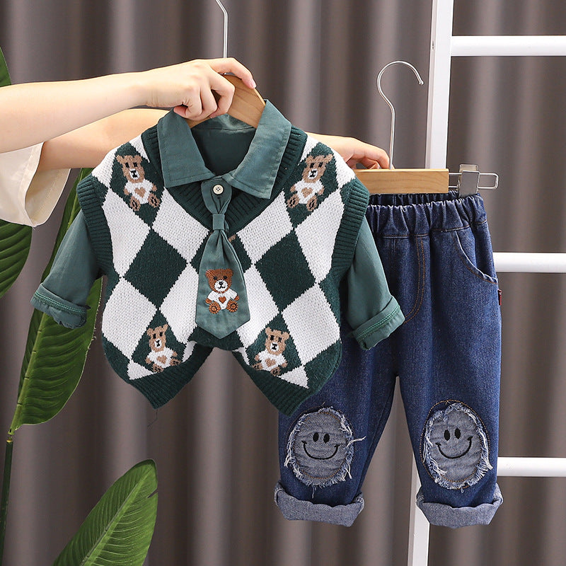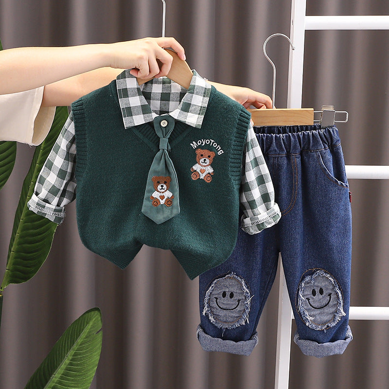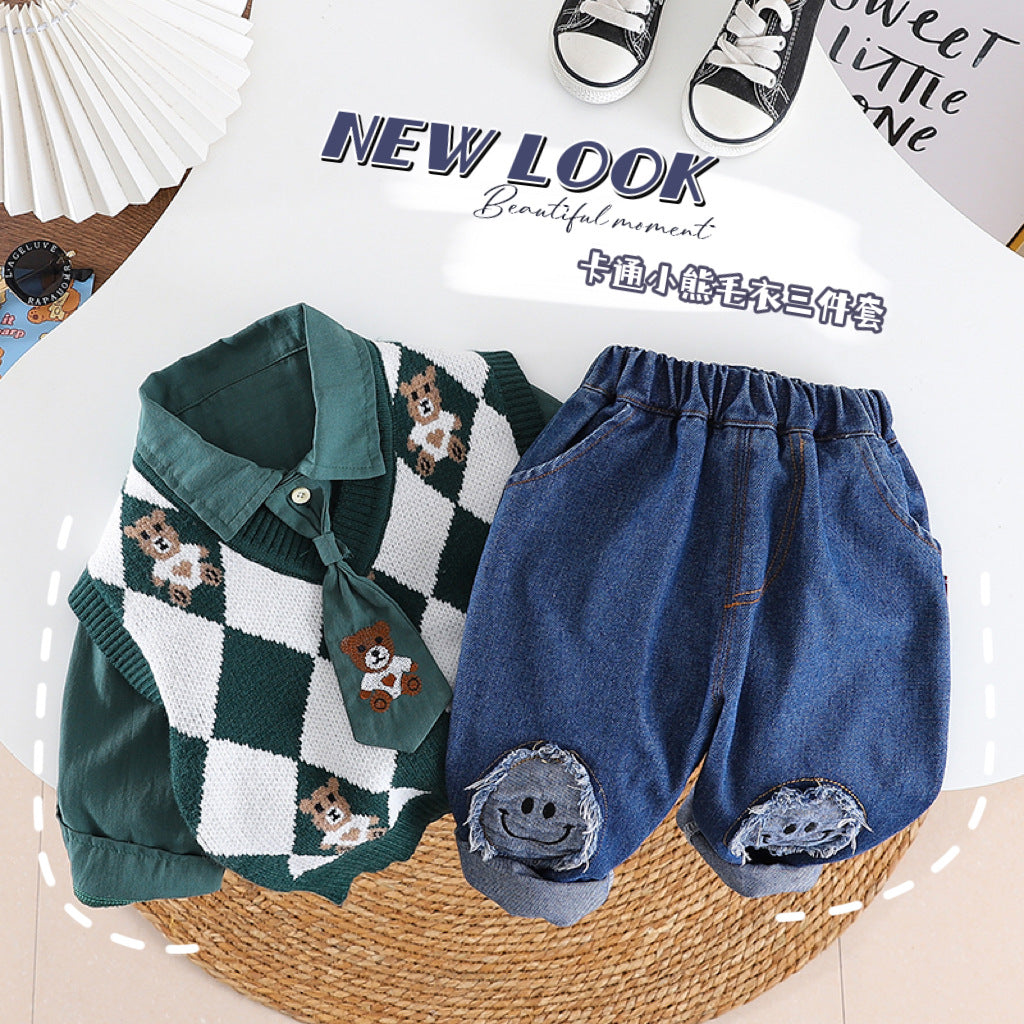 طقم ولادي 4 قطع ( قميص + فست صوف + بنطلون جينز + جرافة )